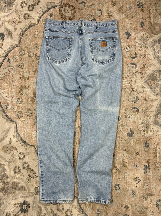 Carhartt Denim Work Wear Traditional Fit Light Stone Wash Pants Size 36W