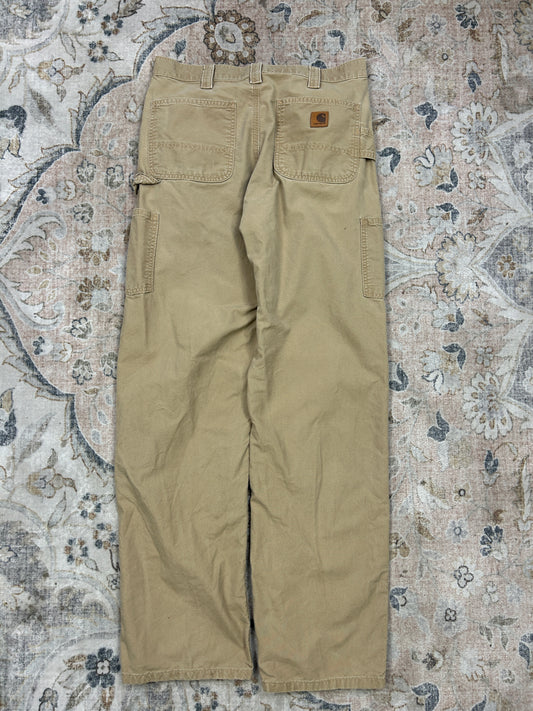 Carhartt Canvas Work-Wear Double Knee Loose Original Fit Pants Size 32W Beige