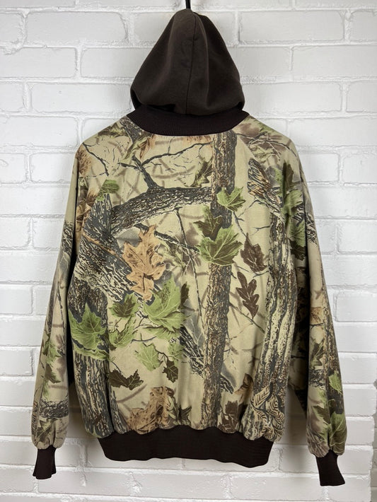 Cabelas Real Tree Camo Quilted Lined Insulated Hooded Bomber Jacket Size L