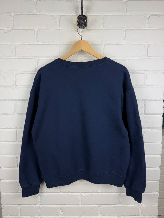 Russell Athletic Cropped Boxy Fit Blank Crewneck Sweatshirt Size M Navy Blue