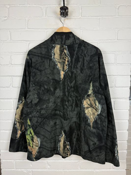 Mossy Oak Tree Camo Embroidered Logo AOP Fleece Full Zip Sweater Size L