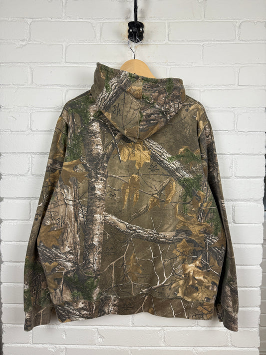 Real Tree XTRA Embroidered Logo All Over Print Camo Hooded Sweatshirt Size XL