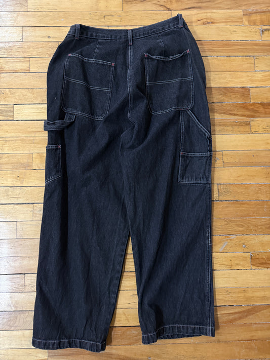 Vintage Y2K Newport News Carpenter Style Work Wear Baggy Fit Black Dark Denim Size 37W