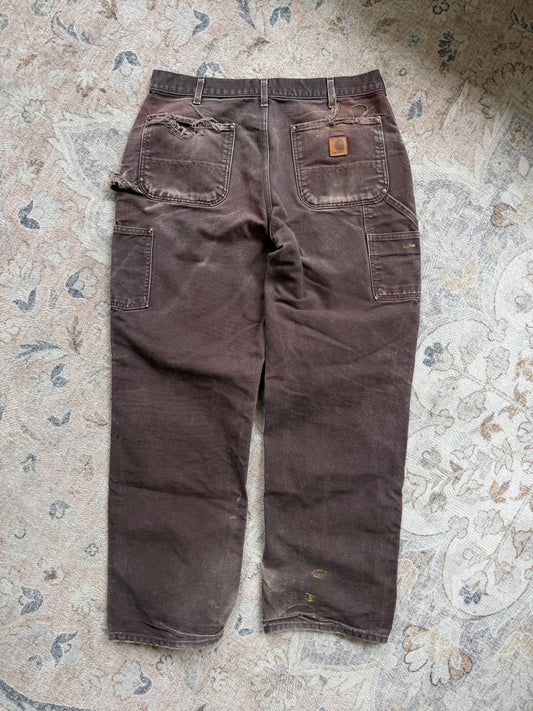 Vintage Carhartt Canvas Work Wear Double Knee Loose Fit Pants Size 34W B136 Brown