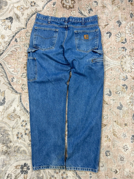 Vintage Carhartt Denim Carpenter Work Wear Dark Wash Jeans Pants Size 36W