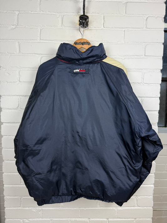 Vintage 90s Tommy Hilfiger Embroidered Flag Down Feathers Insulated Puffer Jacket Size L