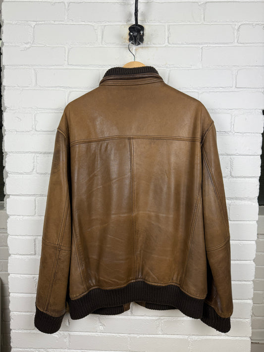 Vintage Danier Lined Brown Leather Aviator Bomber Full Zip Jacket Size XXL