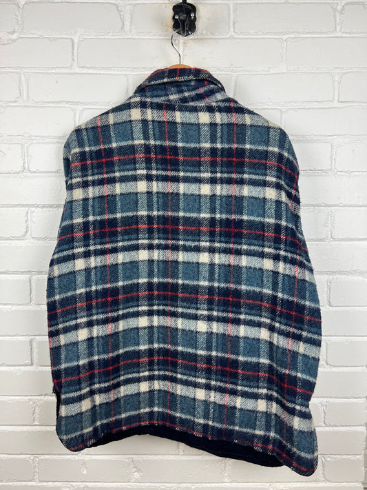 Vintage 80s Cross Country Sportswear Fleece Lined Plaid Button Up Overcoat Jacket Size XL