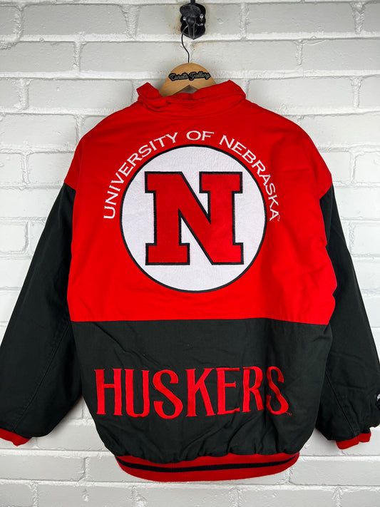 Vintage 90s Nebraska Cornhuskers NCAA #1 Apparel Insulated Two Tone Bomber Jacket Size L