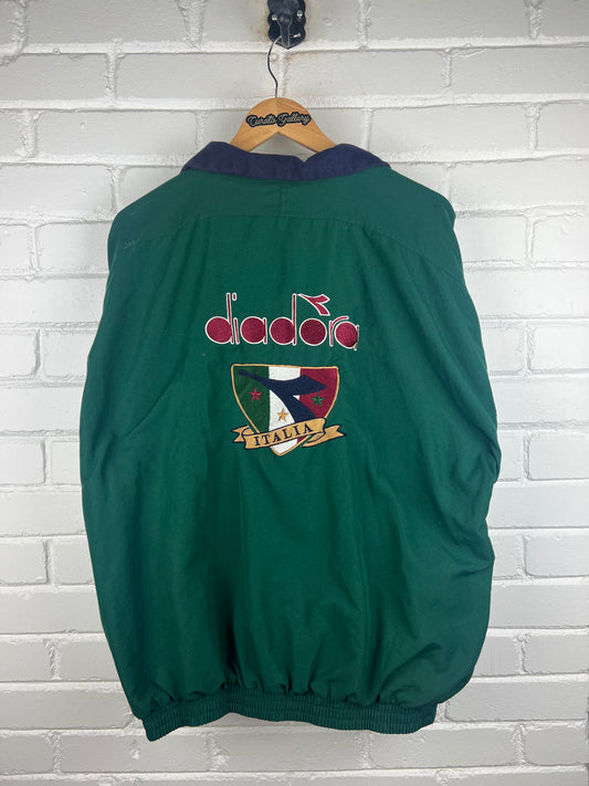 Vintage 90s Diadora Italia Big Logo Embroidered Italy Light Jacket Size L Green