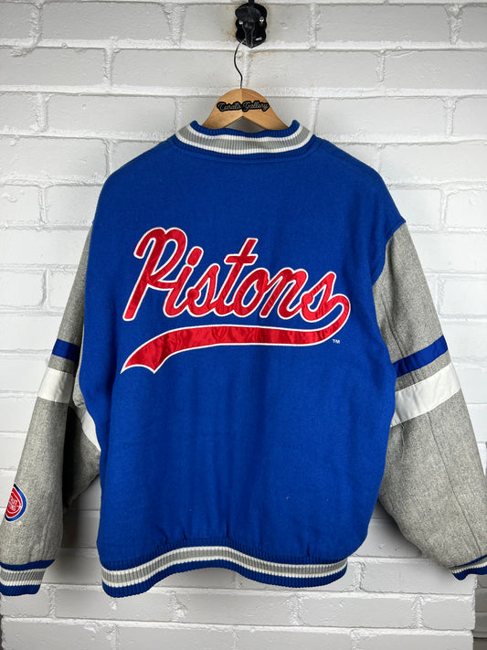 Vintage 80s/90s Detroit Pistons NBA Script Spell Out Insulated Wool Bomber Jacket Size XL
