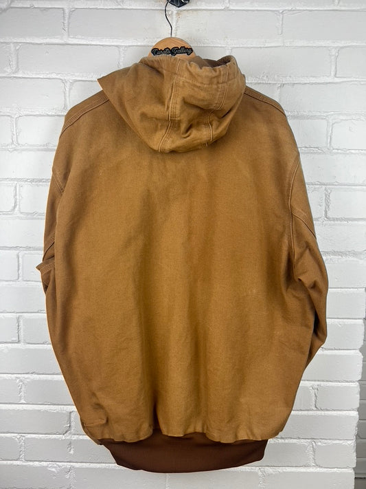 Vintage 90s Carhartt Thermal Lined Canvas Work Wear Hooded Bomber Jacket Size XL J131
