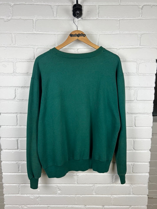 Vintage 90s Champion Embroidered Spell Out Forrest Green Crew Neck Sweatshirt Size XL