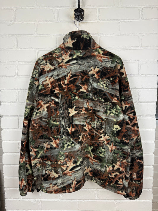 Vintage Brents Tree Camo All Over Print Fleece Full Zip Sweater Size L