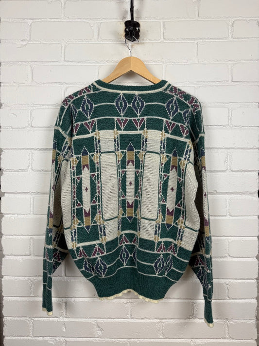 Vintage Town Craft Abstract Argyle Print Acrylic Knit Sweater Size L Made USA