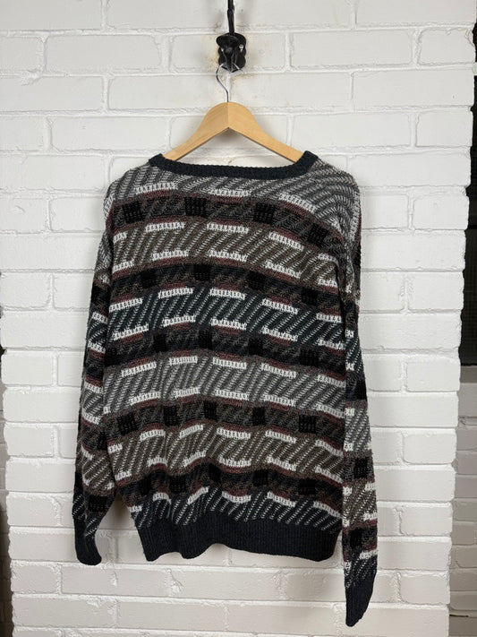 Vintage 90s Hennesy By Van Heusen Abstract Print Acrylic Knit Sweater Size L