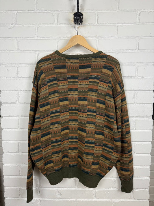 Vintage 90s Woods & Gray Russet Block Knit Sweatshirt Size L Autumn Colors