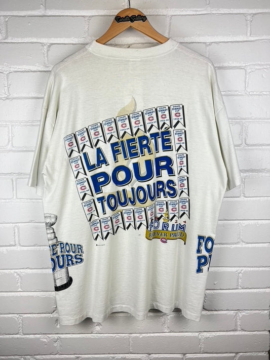 Vintage 90s Montreal Canadians Forever Proud Bulletin Athletic All Over Print NHL T Shirt Size XL