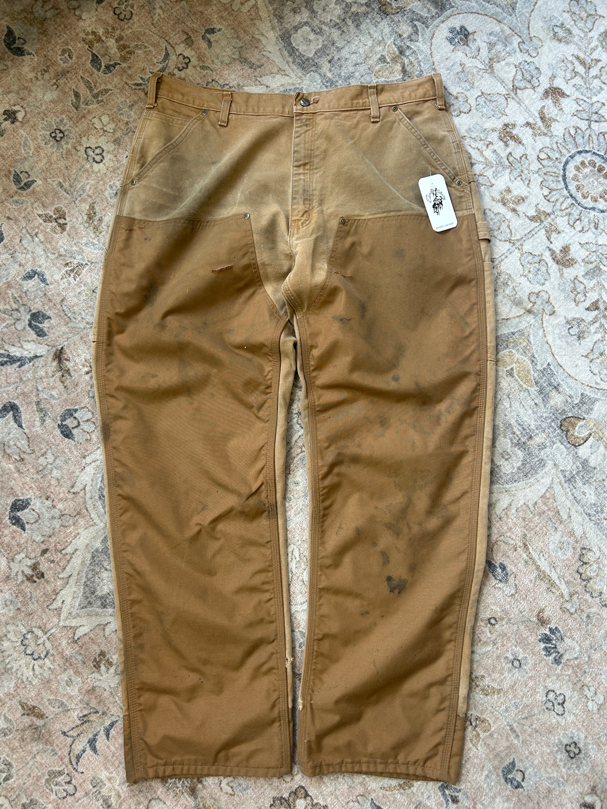 Carhartt Canvas Work-Wear Double Knee Dungaree Fit Pants Size 40W Beige B292