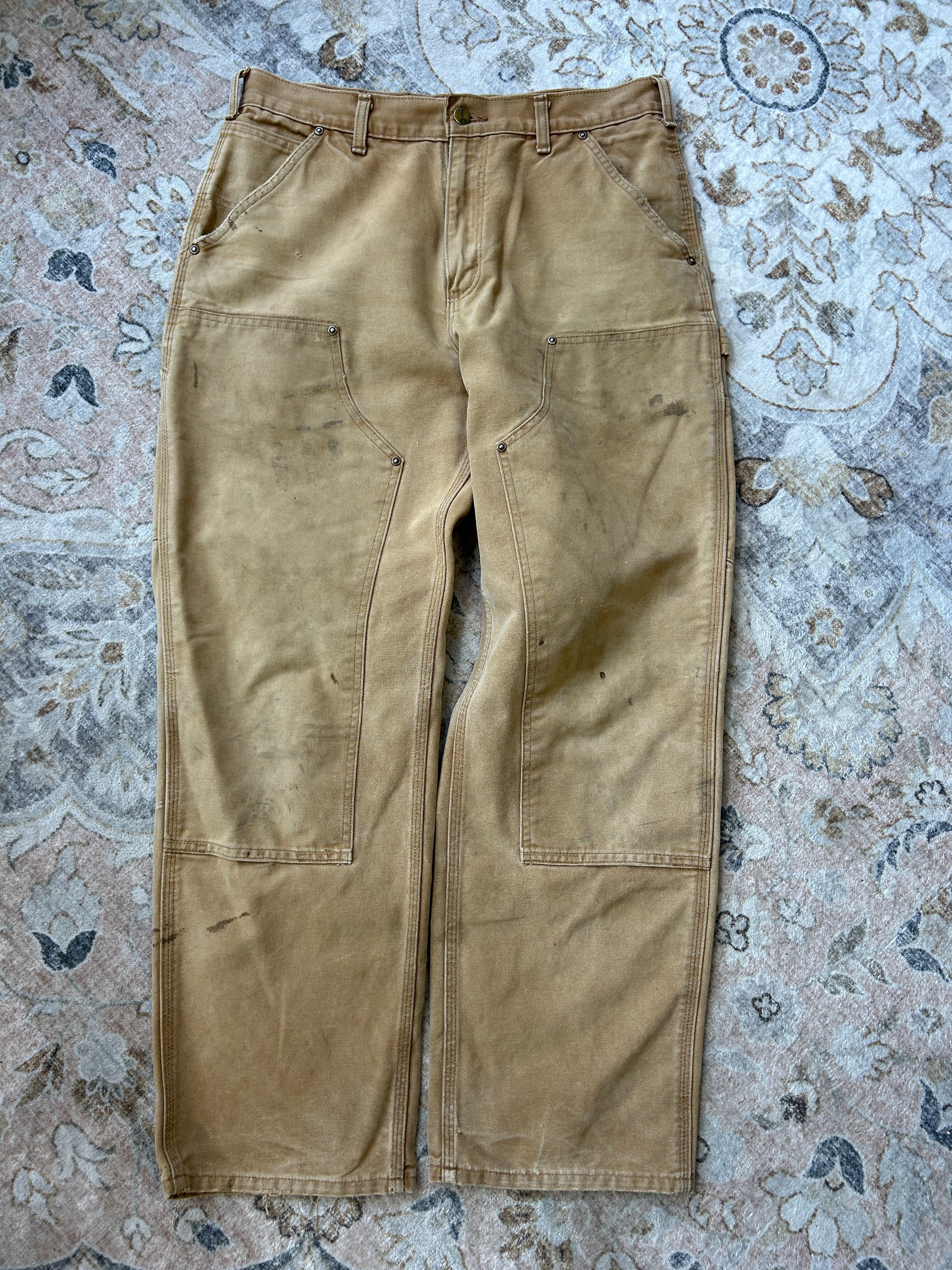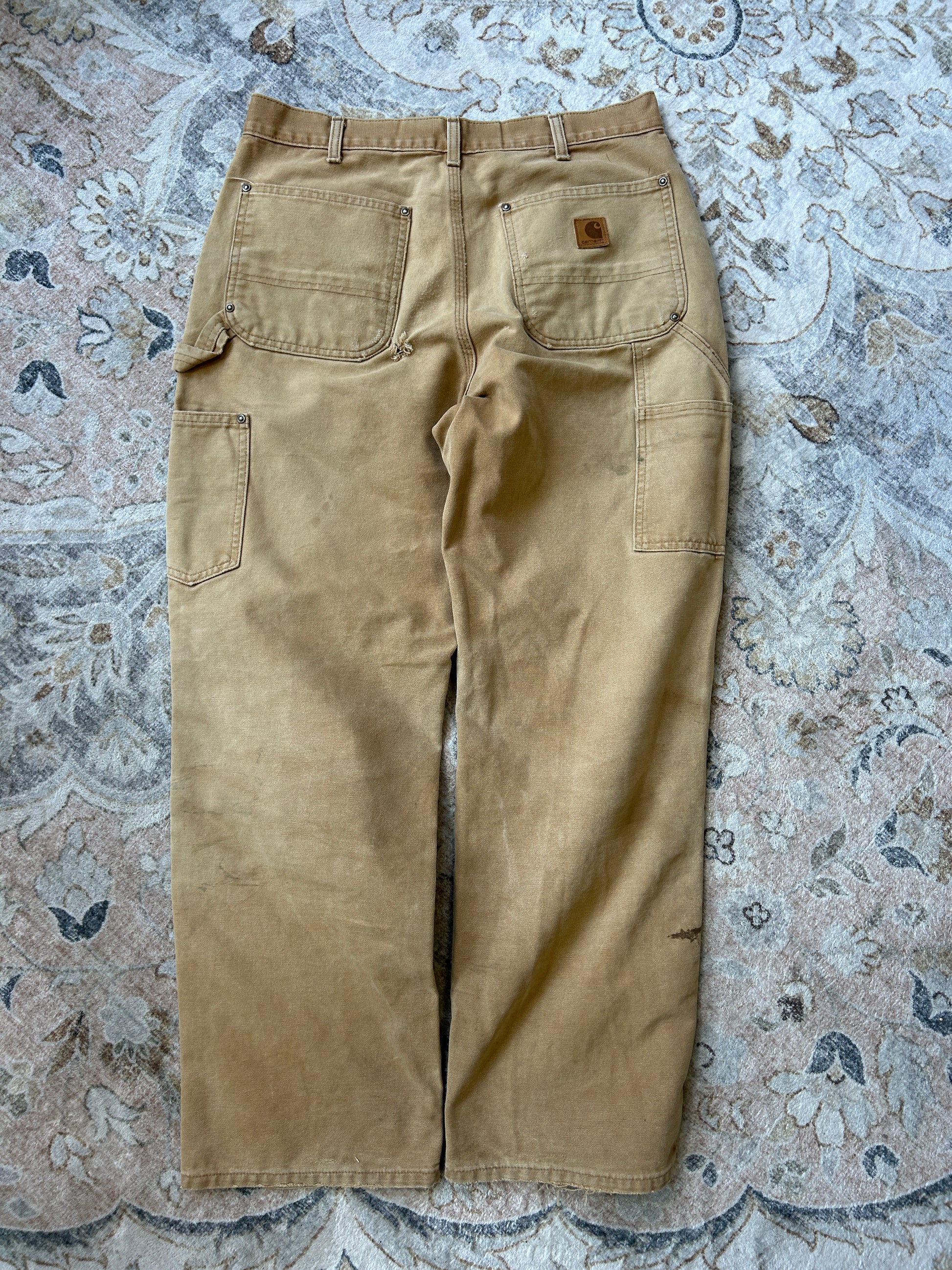 Carhartt Canvas Work-Wear Double Knee Loose Original Fit Pants Size 32W Beige