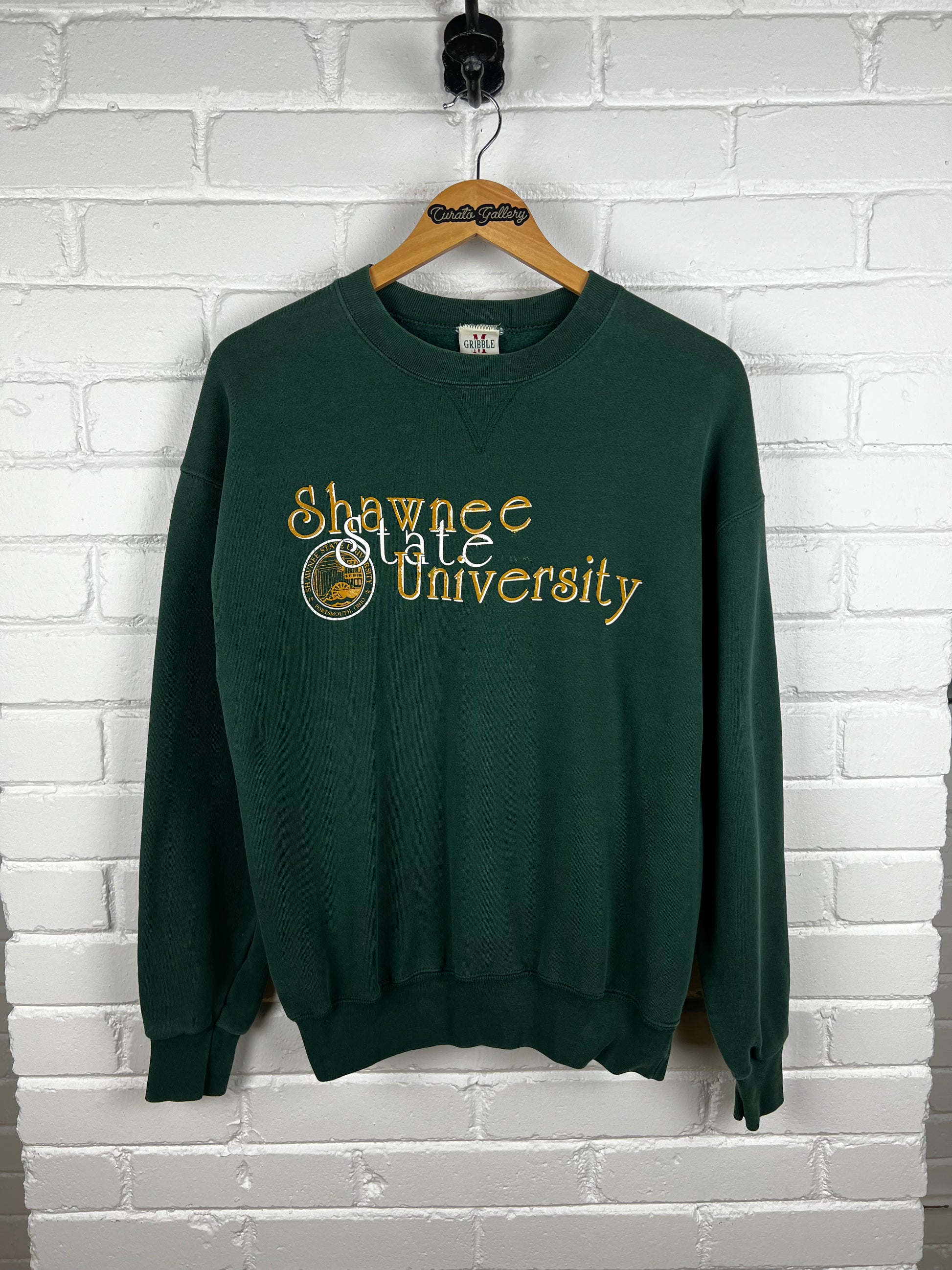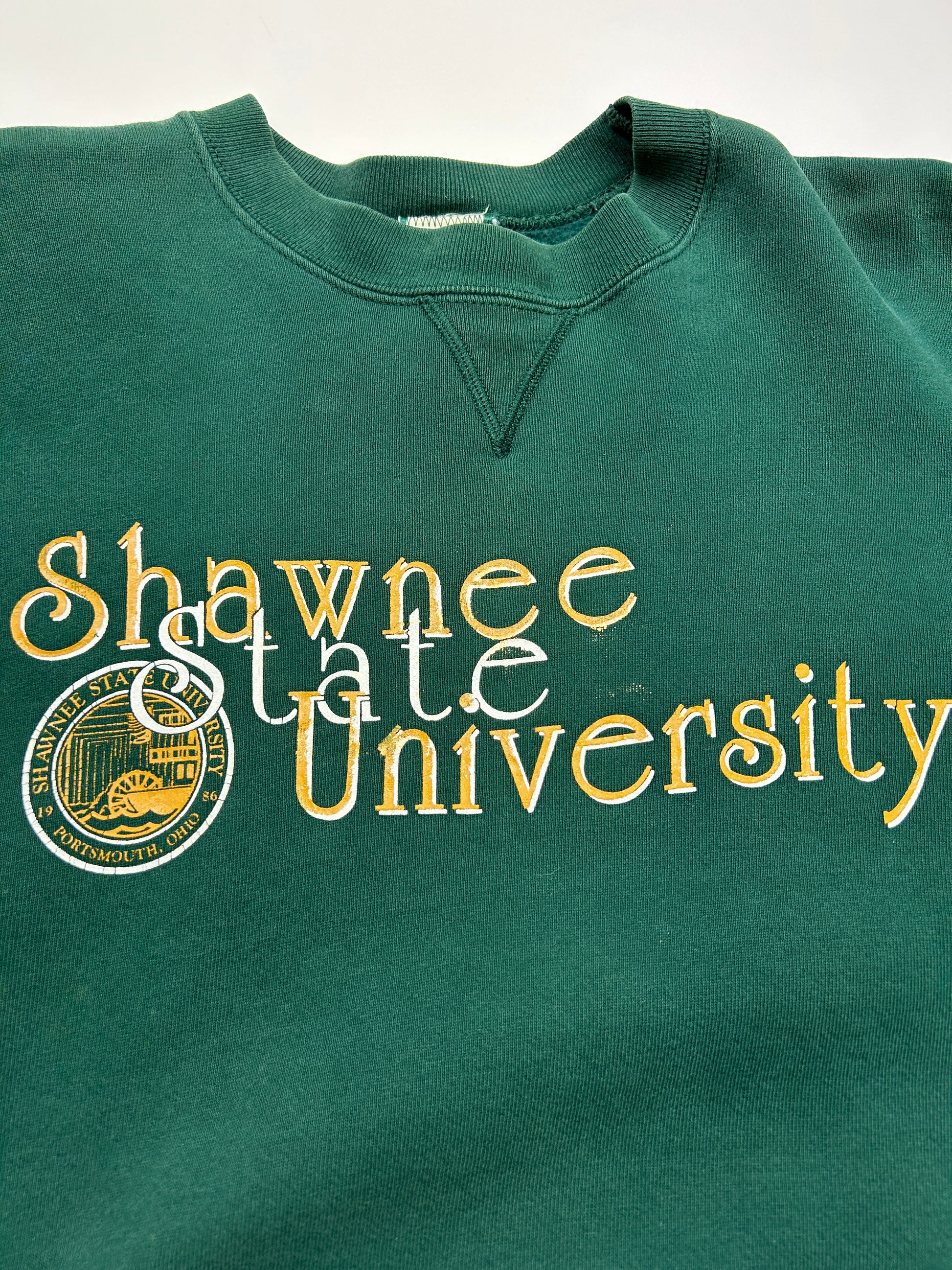 Vintage 90s Shawnee State University Collegiate Crest Spell-Out Sweatshirt Size L Forest Green