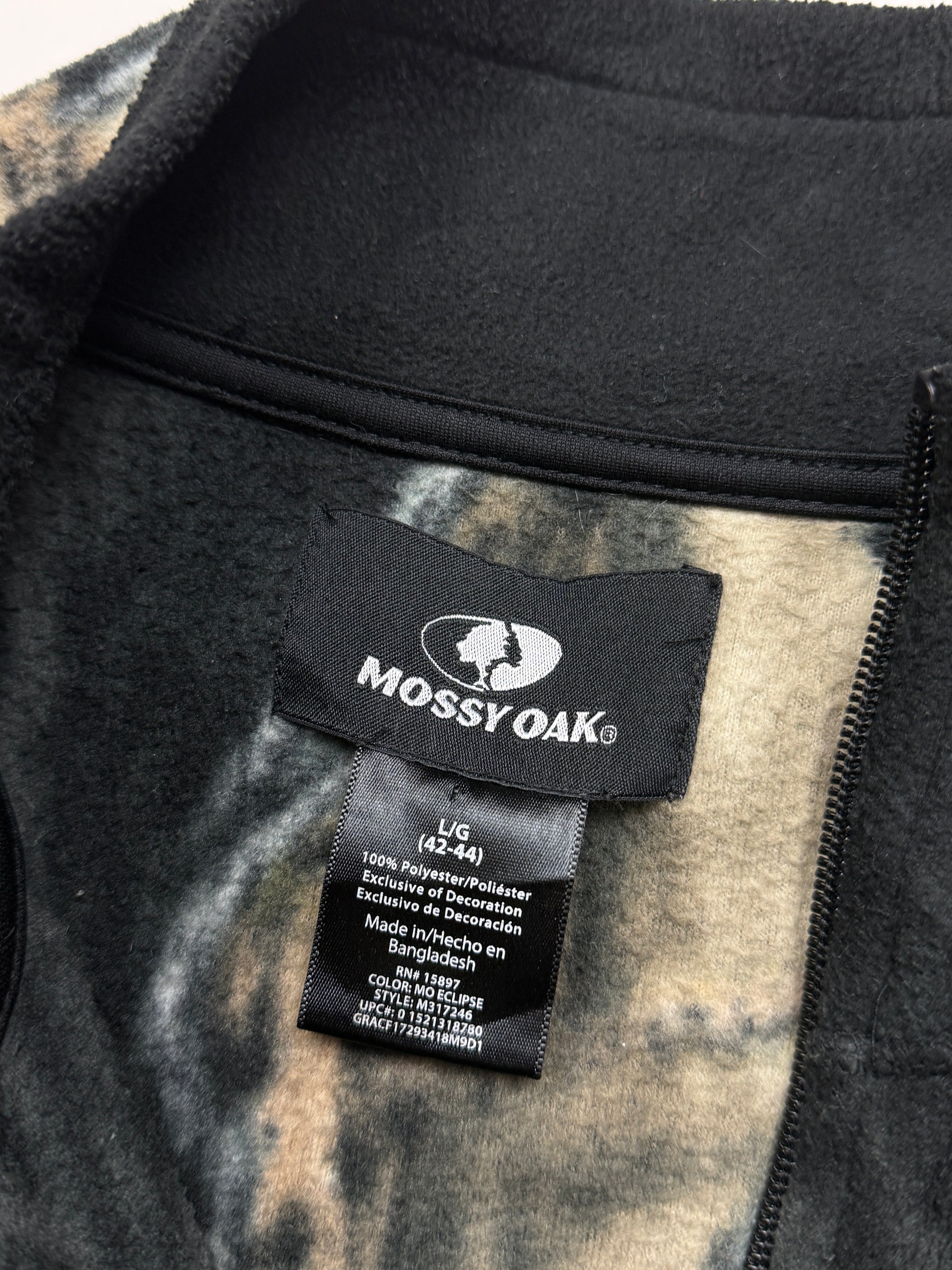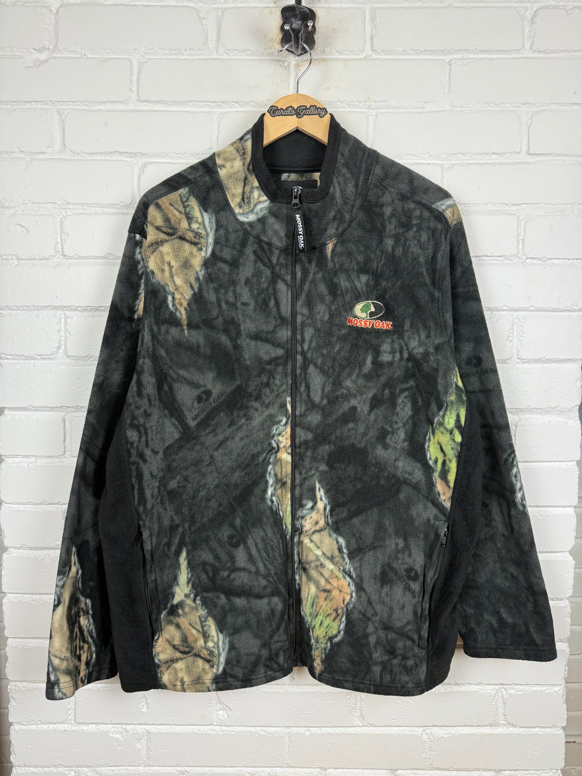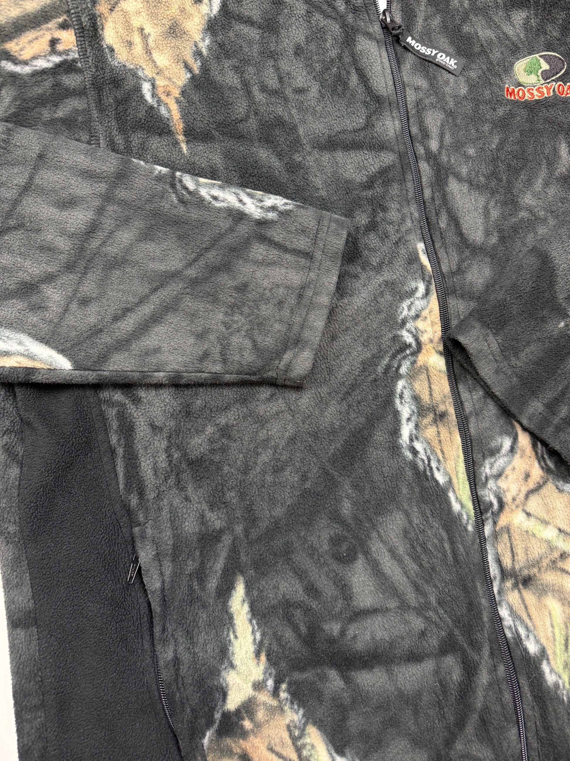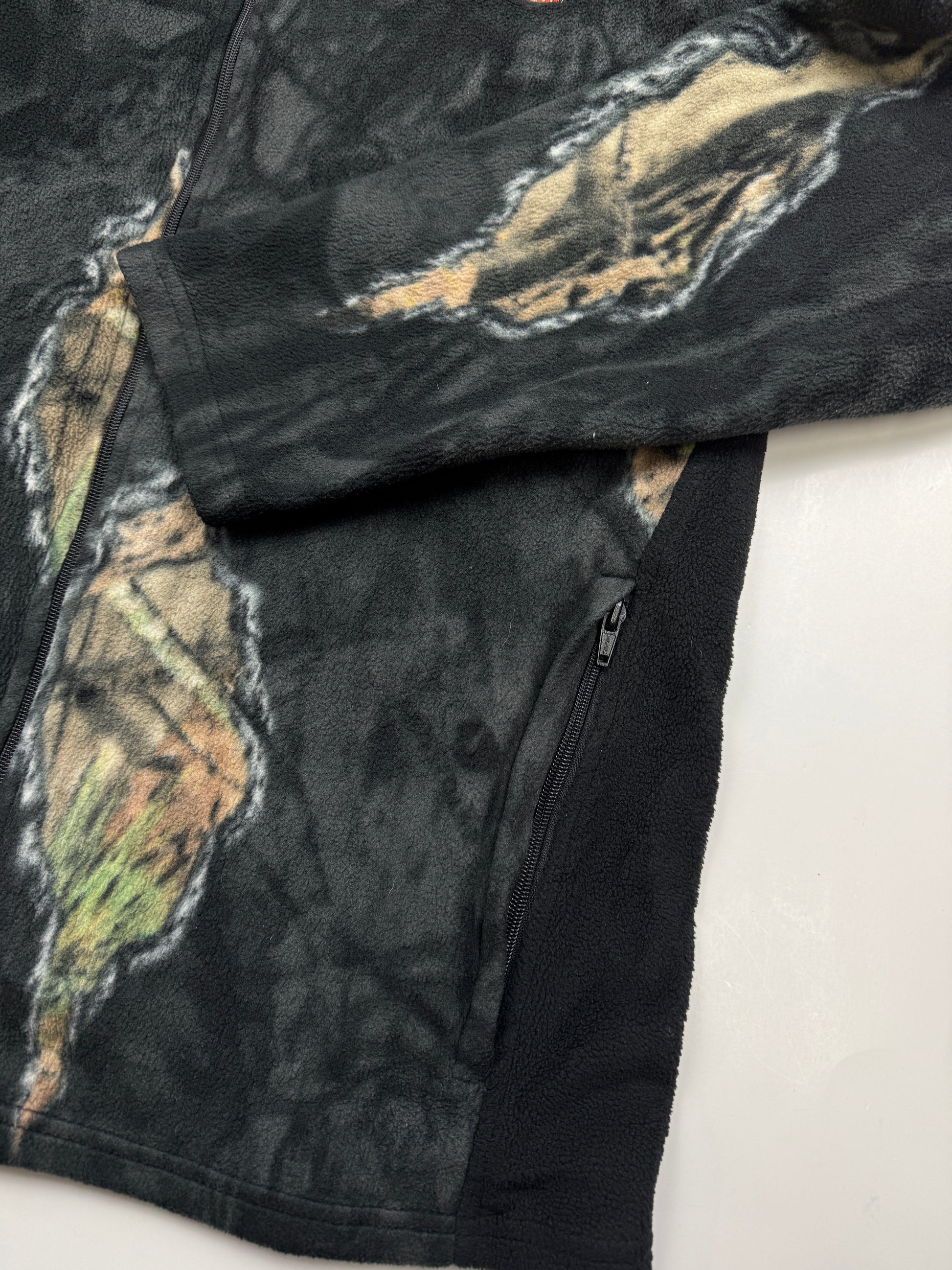 Mossy Oak Tree Camo Embroidered Logo AOP Fleece Full Zip Sweater Size L