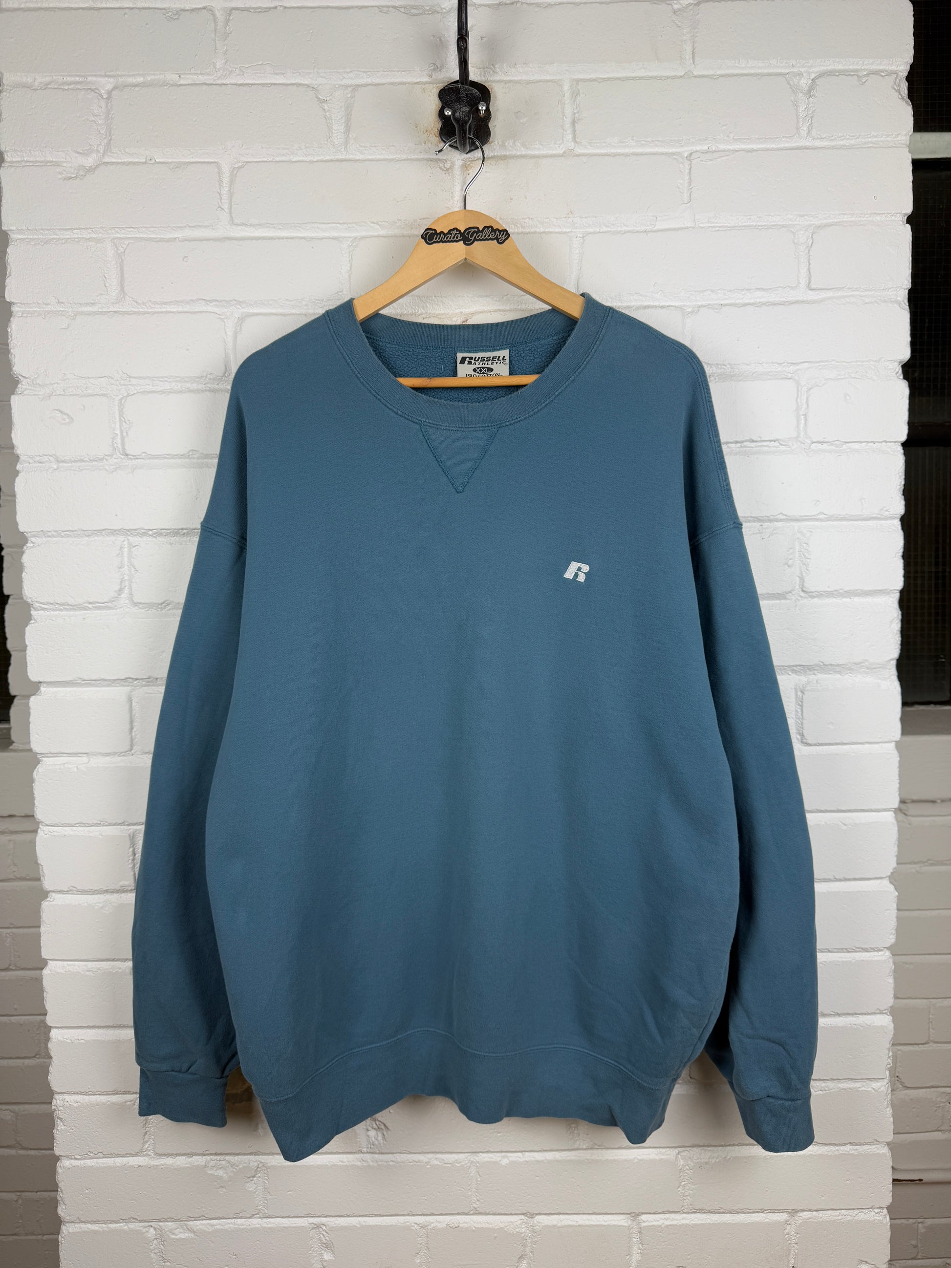 Russell Athletic Boxy Fit Blank Crewneck Sweatshirt Size XXL Faded Blue