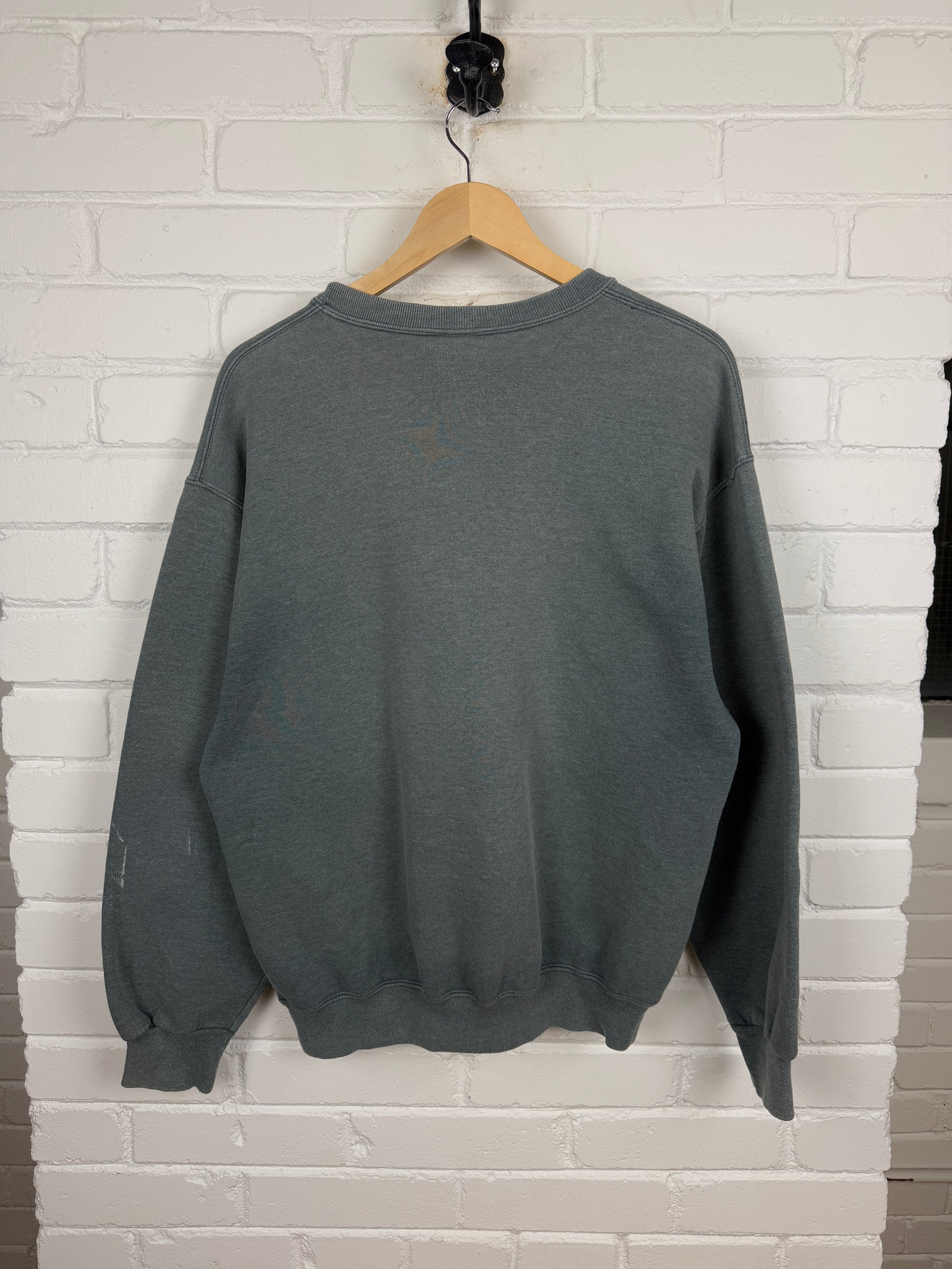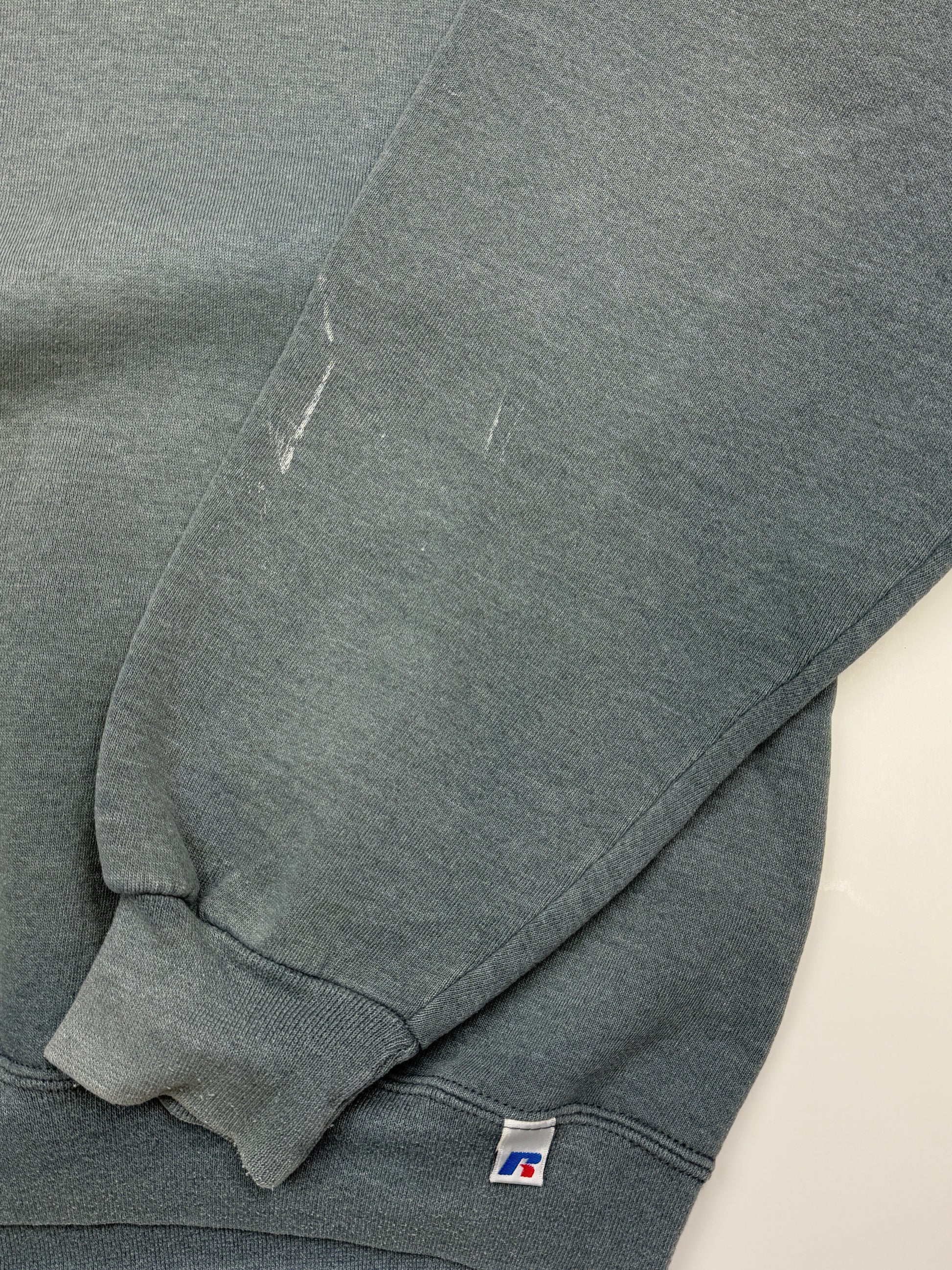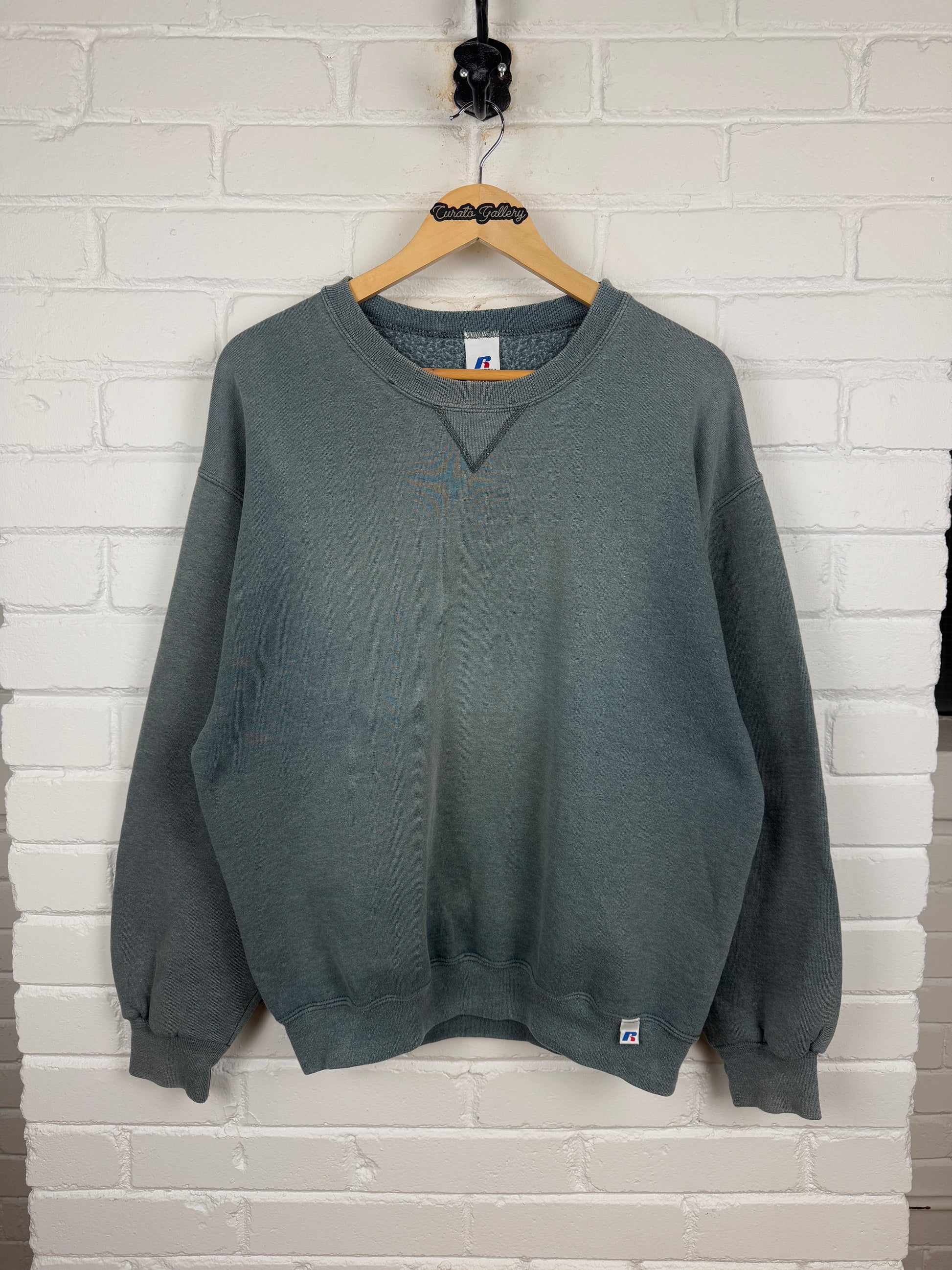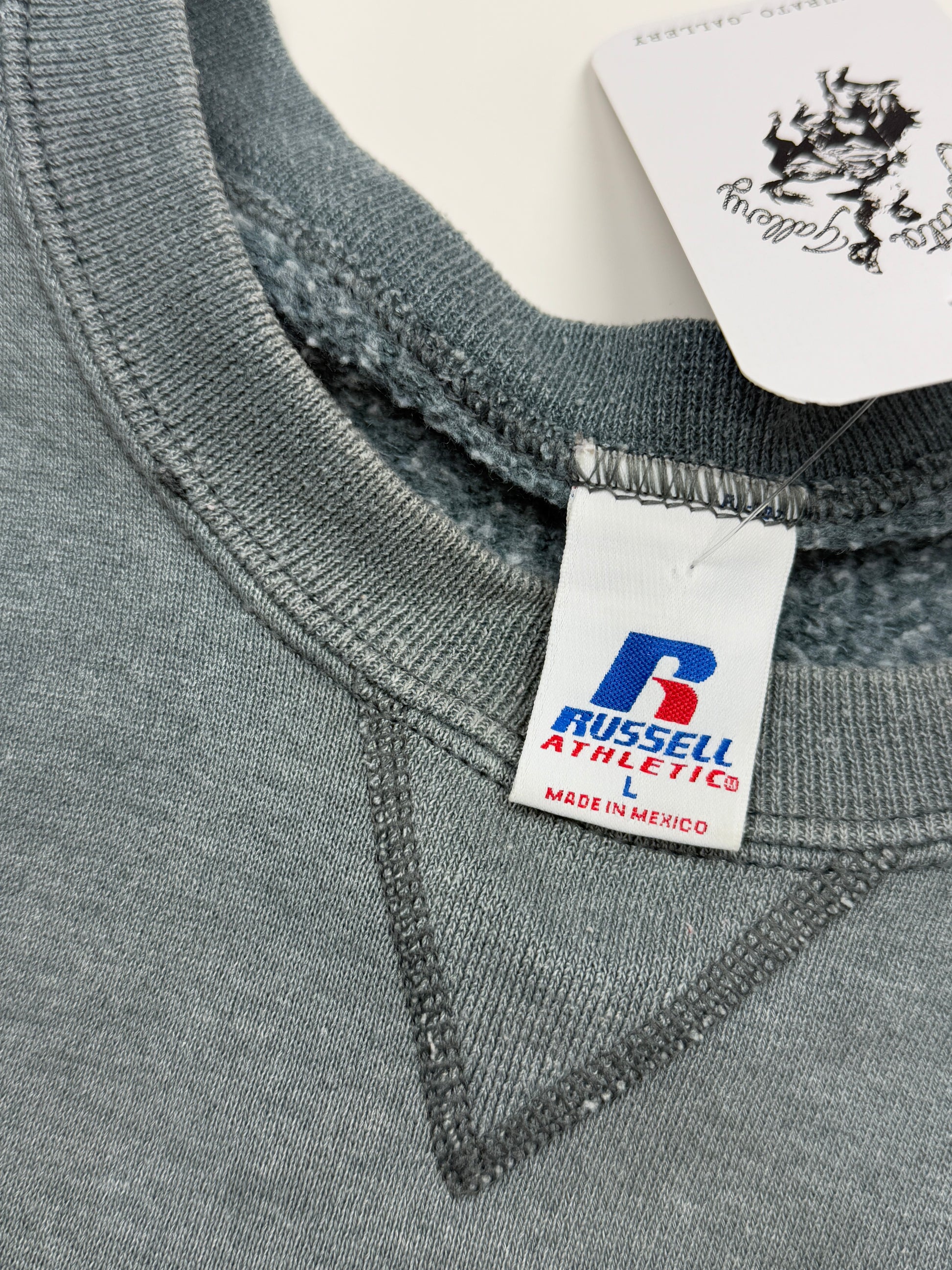 Russell Athletic Cropped Boxy Fit Blank Crewneck Sweatshirt Size L Blue Tone