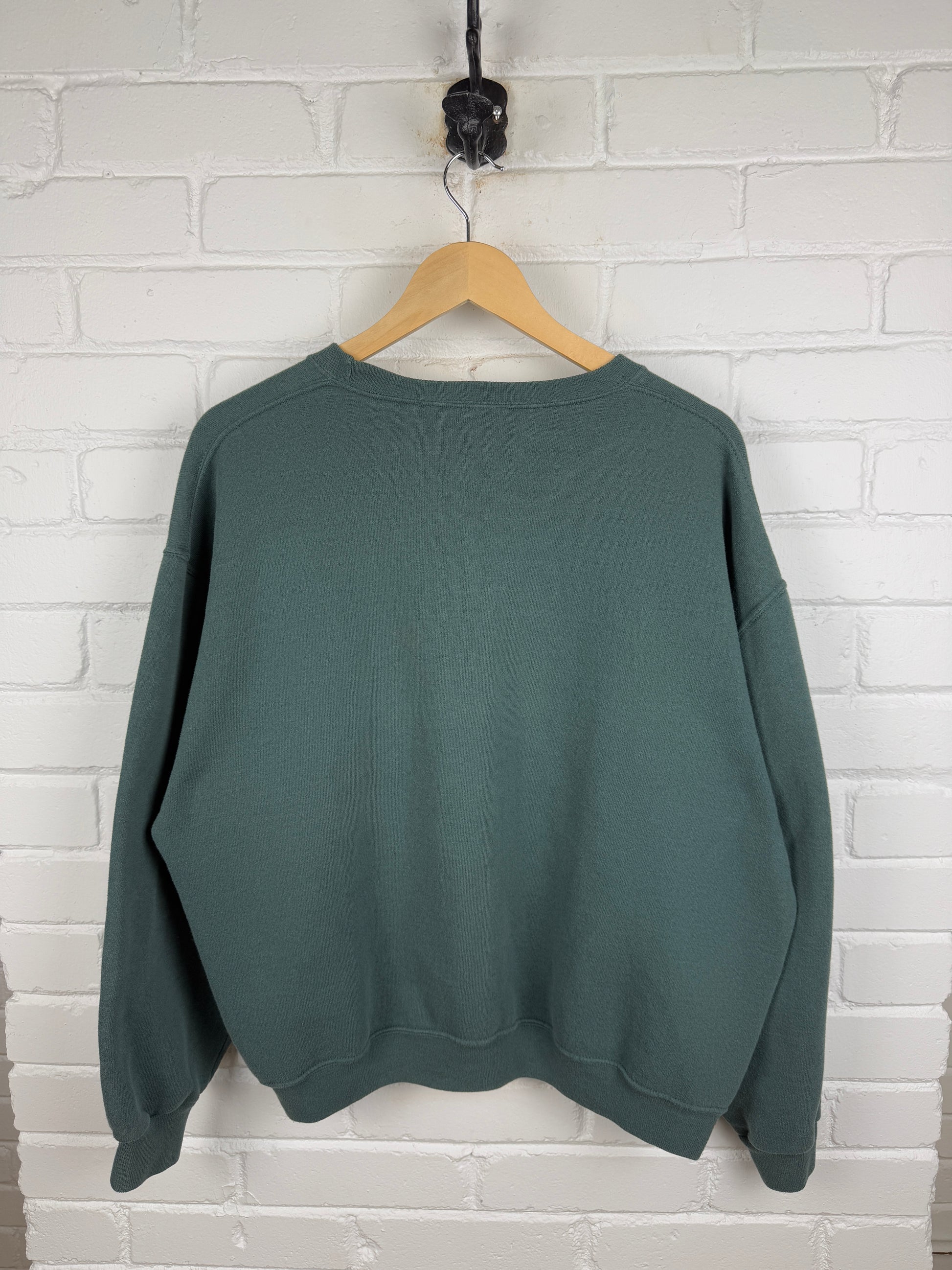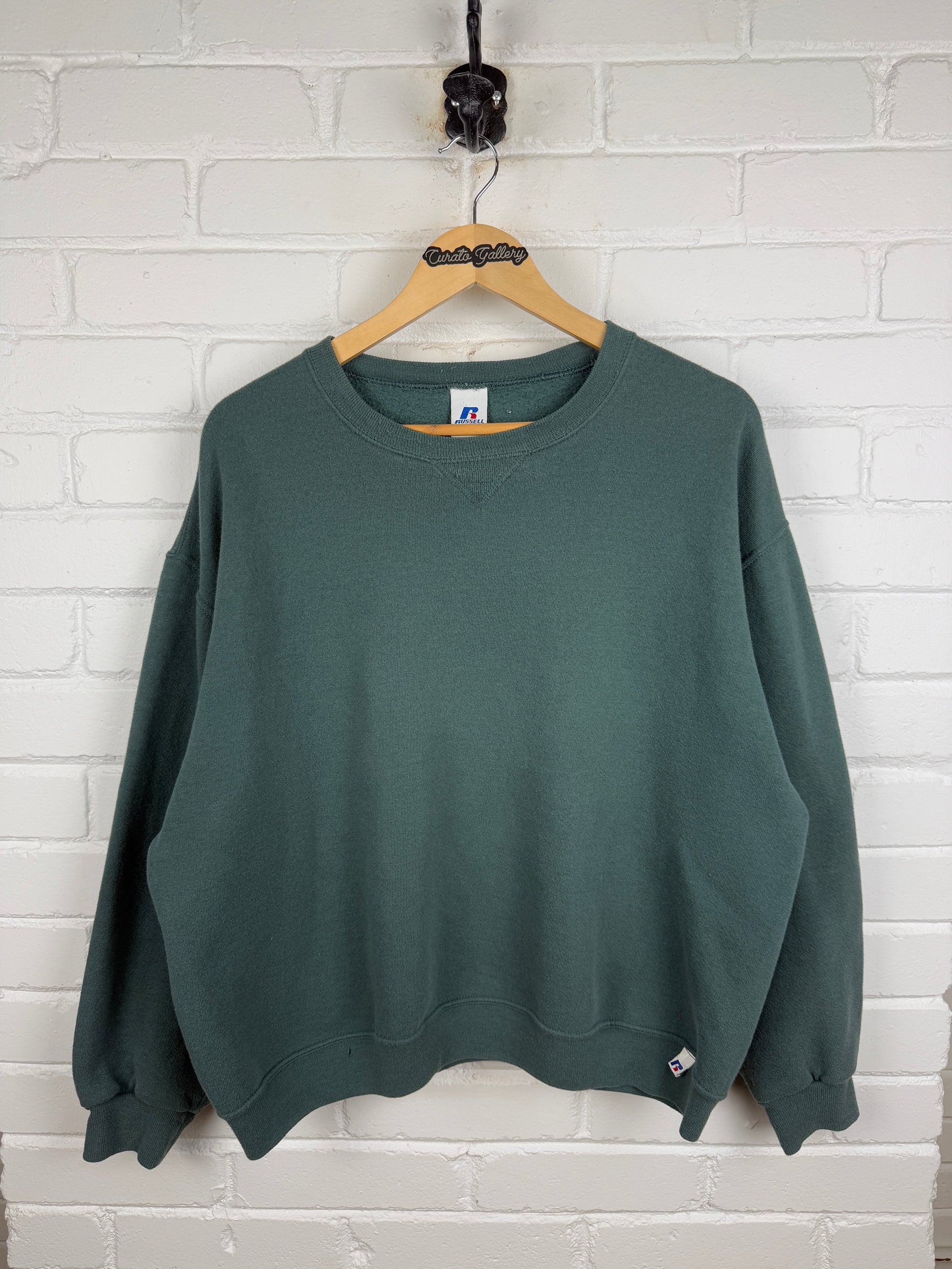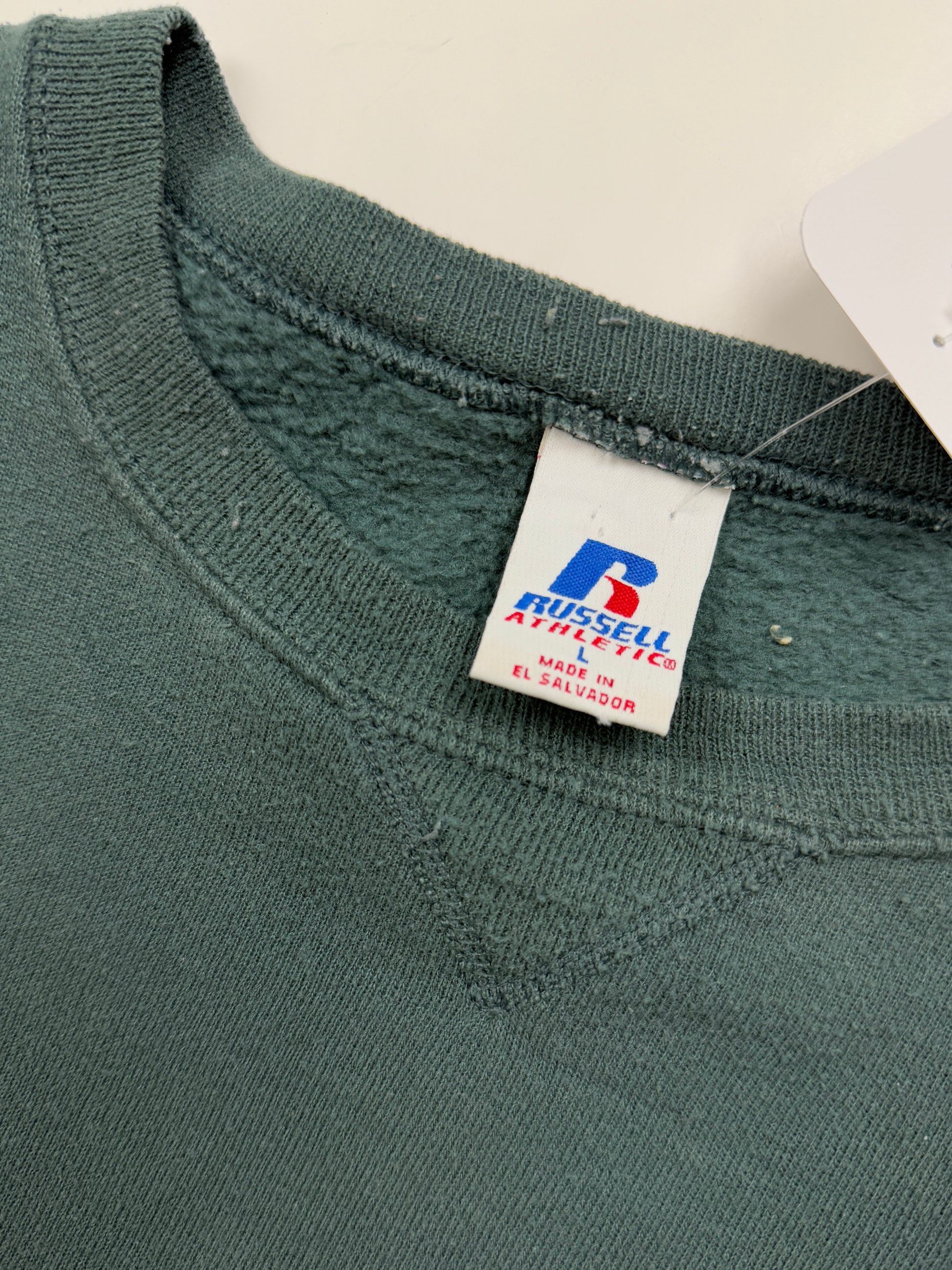 Russell Athletic Cropped Boxy Fit Blank Crewneck Sweatshirt Size L Muted Green