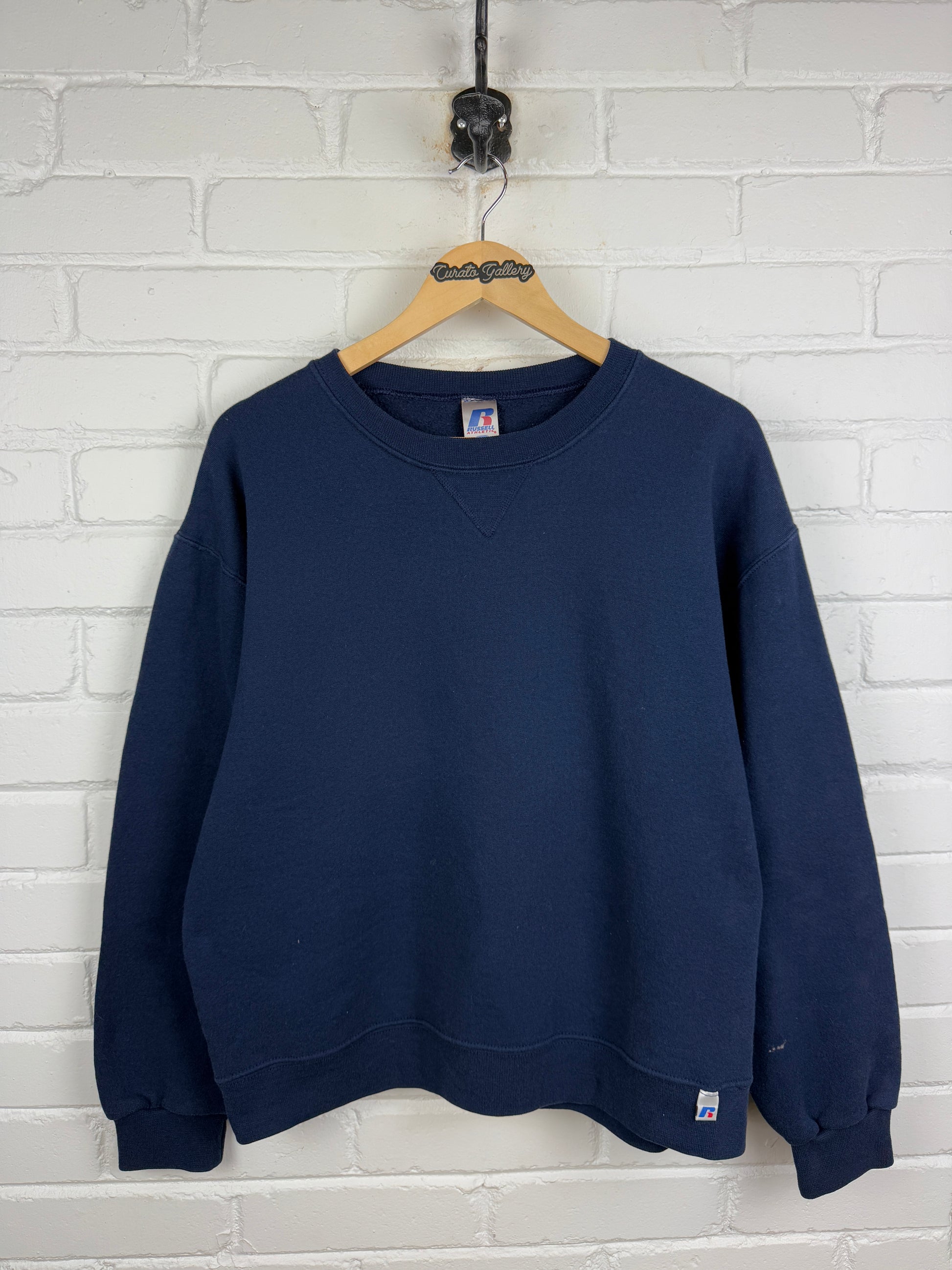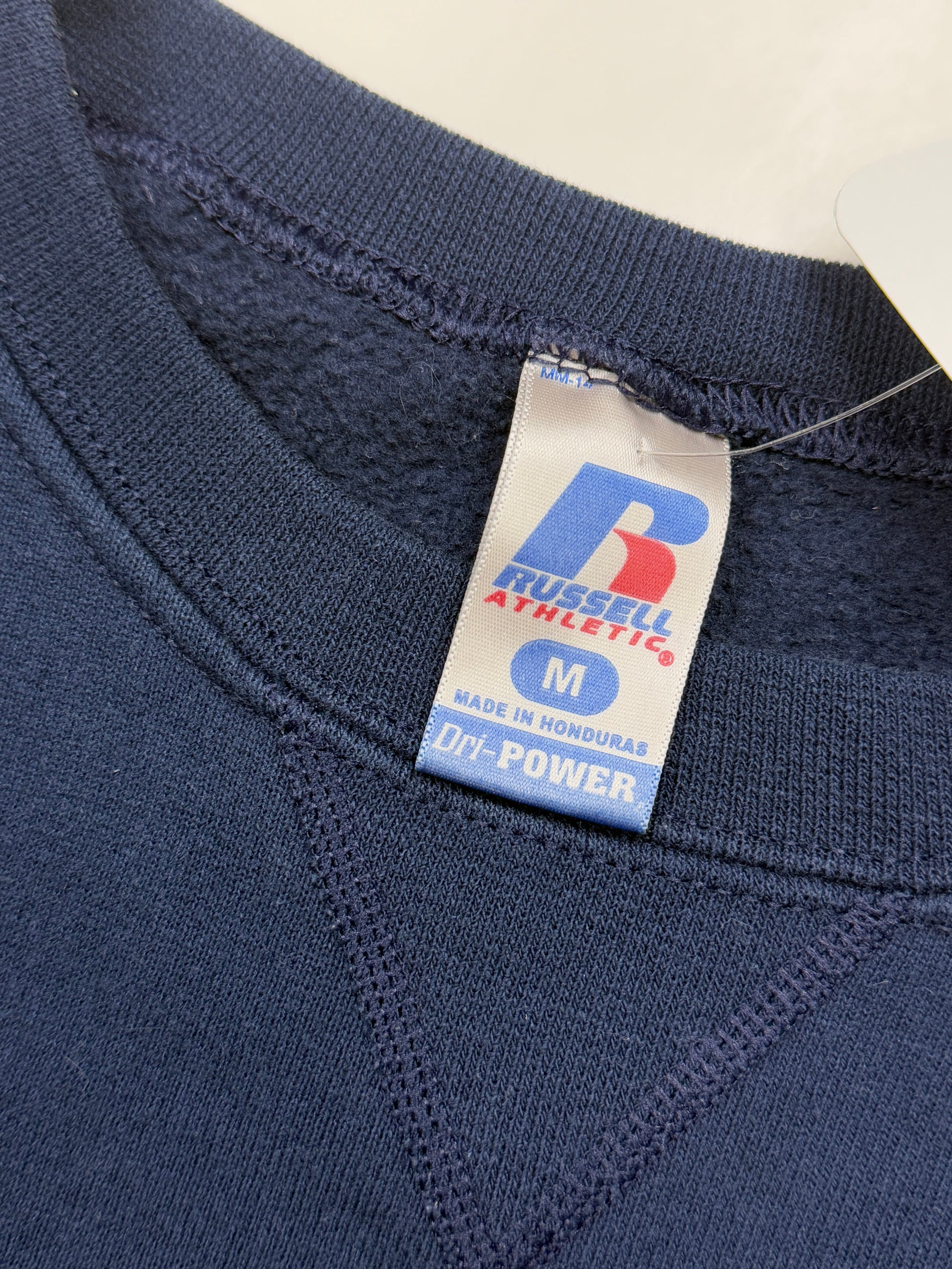 Russell Athletic Cropped Boxy Fit Blank Crewneck Sweatshirt Size M Navy Blue