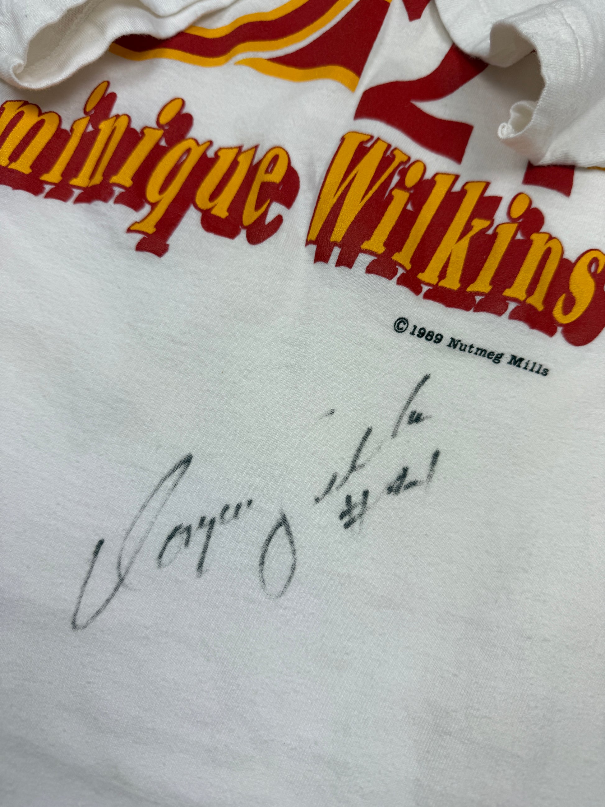 Vintage 1989 Dominique Wilkins #21 Atlanta Hawks NBA Basketball T Shirt Size XL 80s