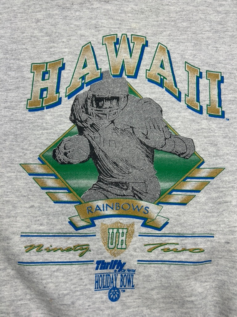 Vintage 1992 Hawaii Rainbows Holiday Bowl NCAA Football Collegiate Sweatshirt Size L 90s
