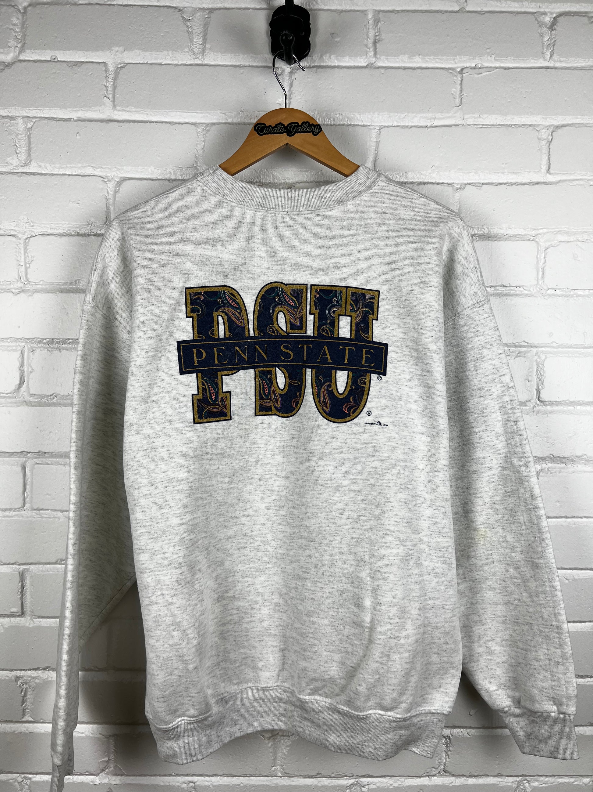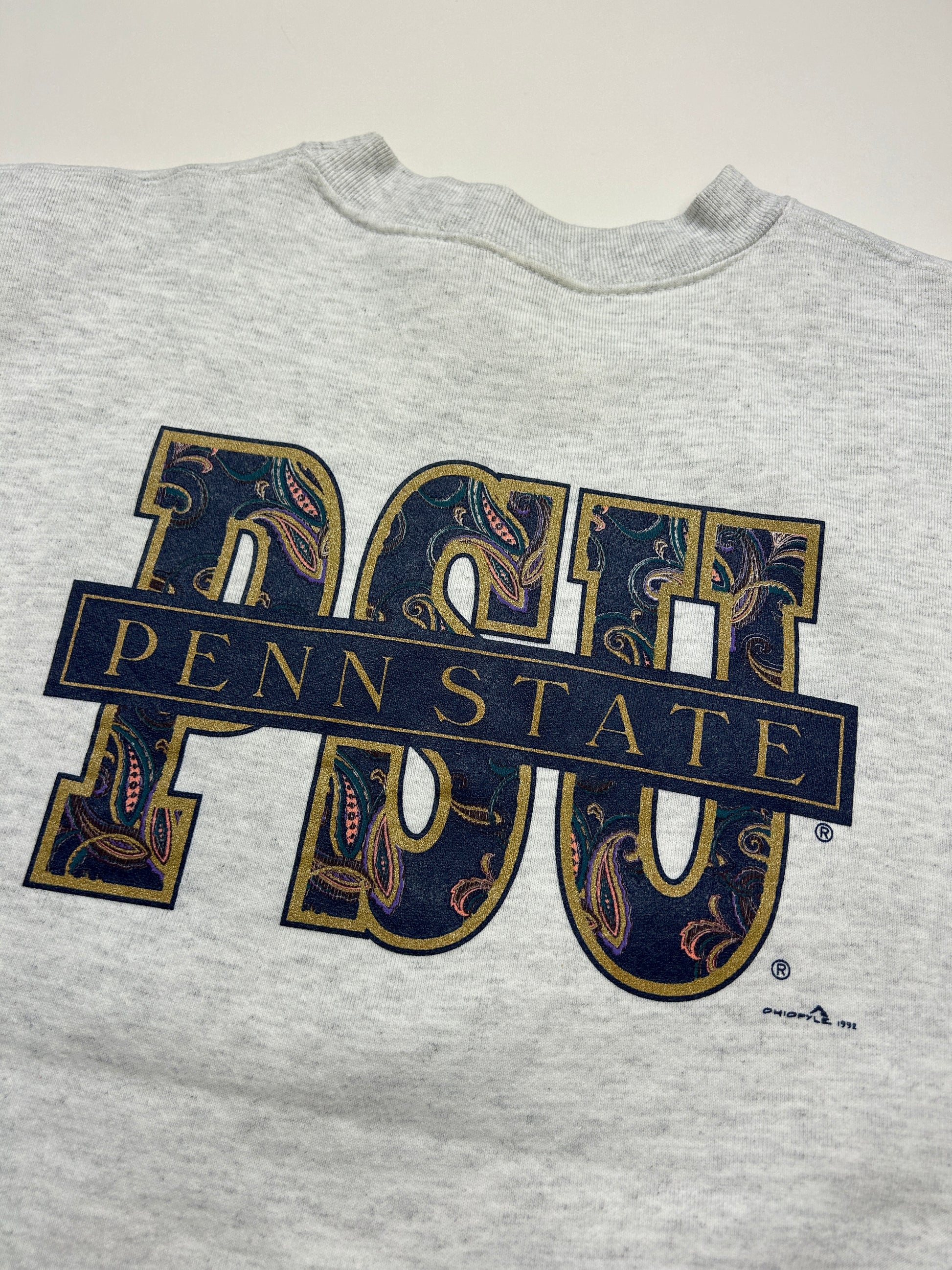Vintage 1992 Penn State Nittany Lions Paisley Print Front & Back Graphic Sweatshirt Size XL 90s