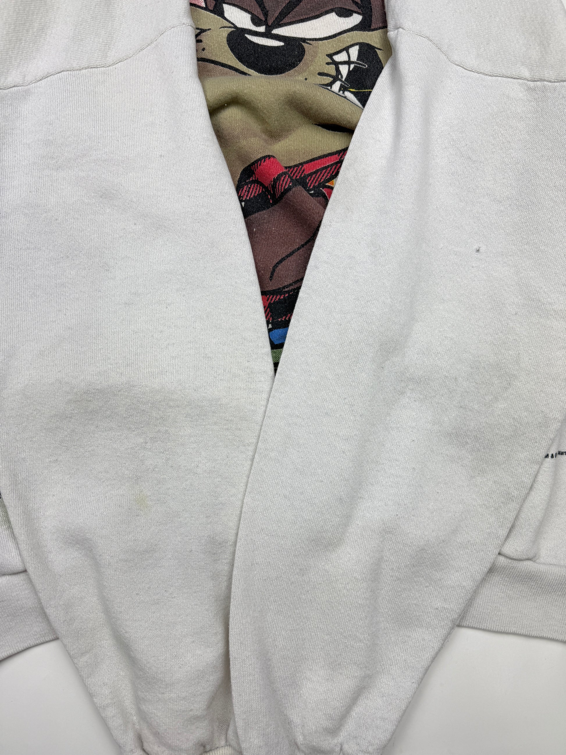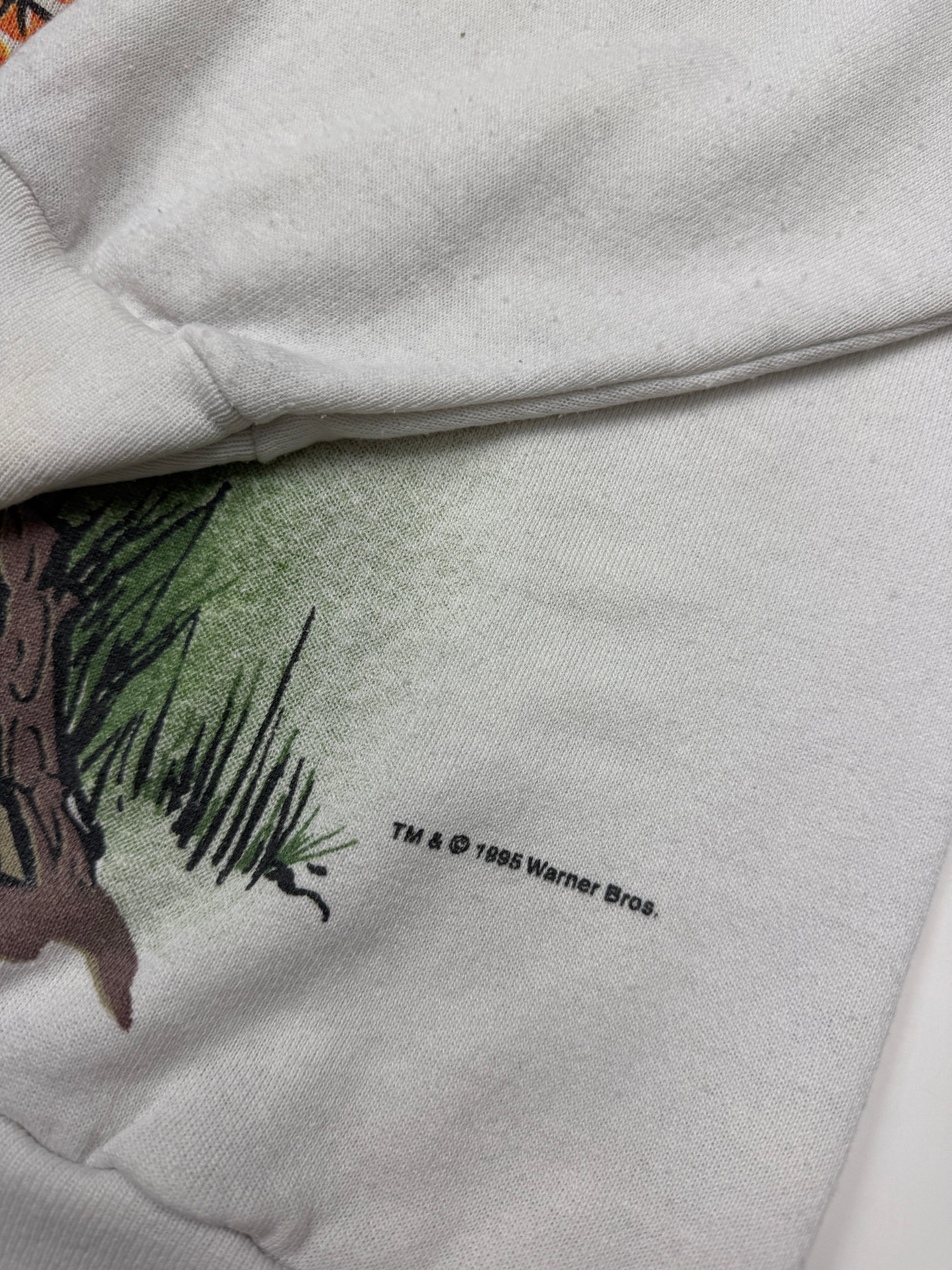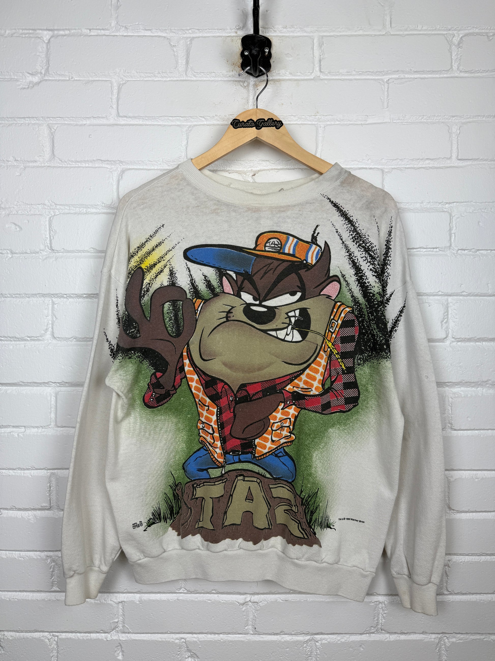 Vintage 1995 Looney Tunes Taz Farmer All Over Cartoon Print Crewneck Sweatshirt Size L 90s