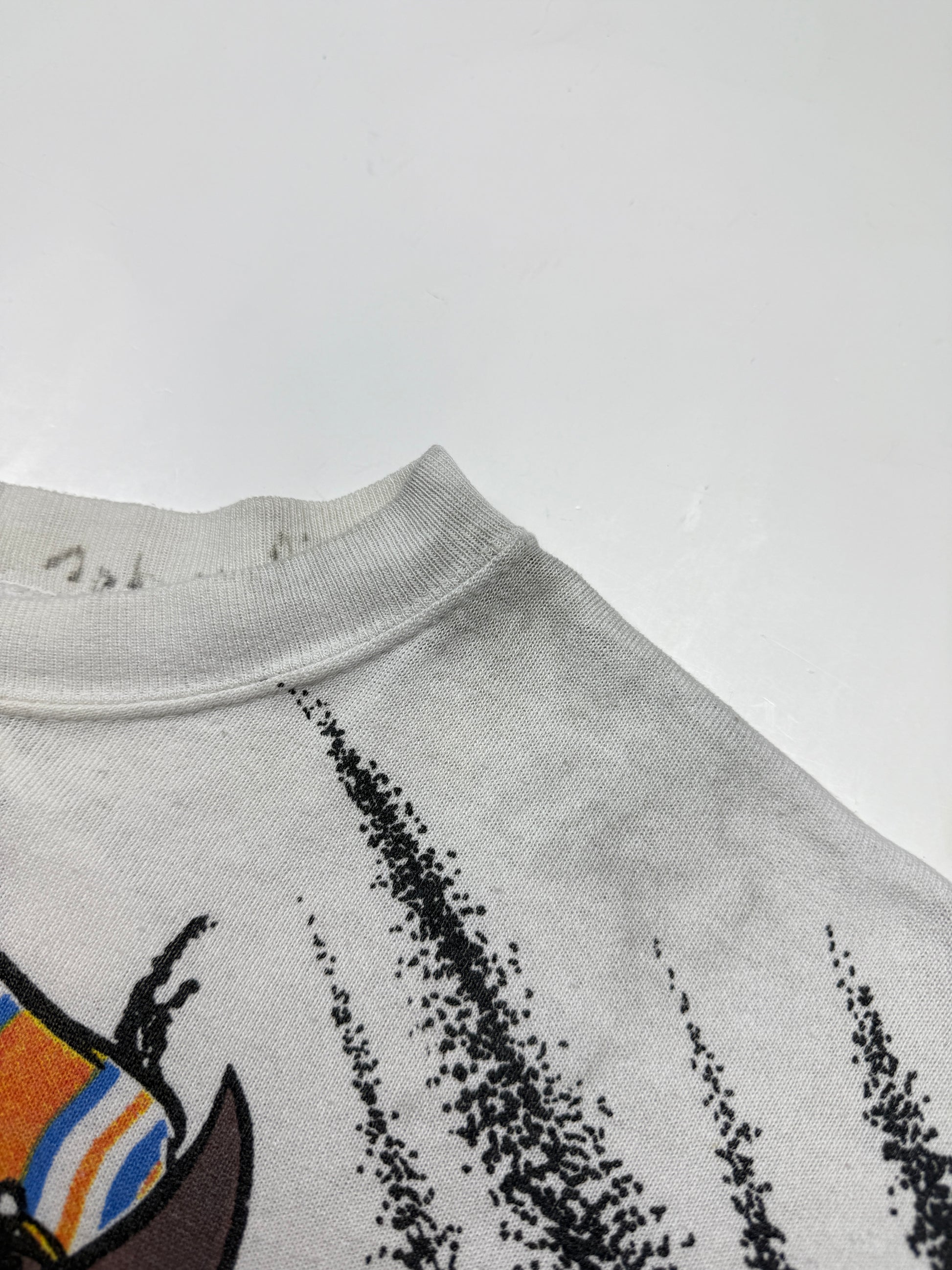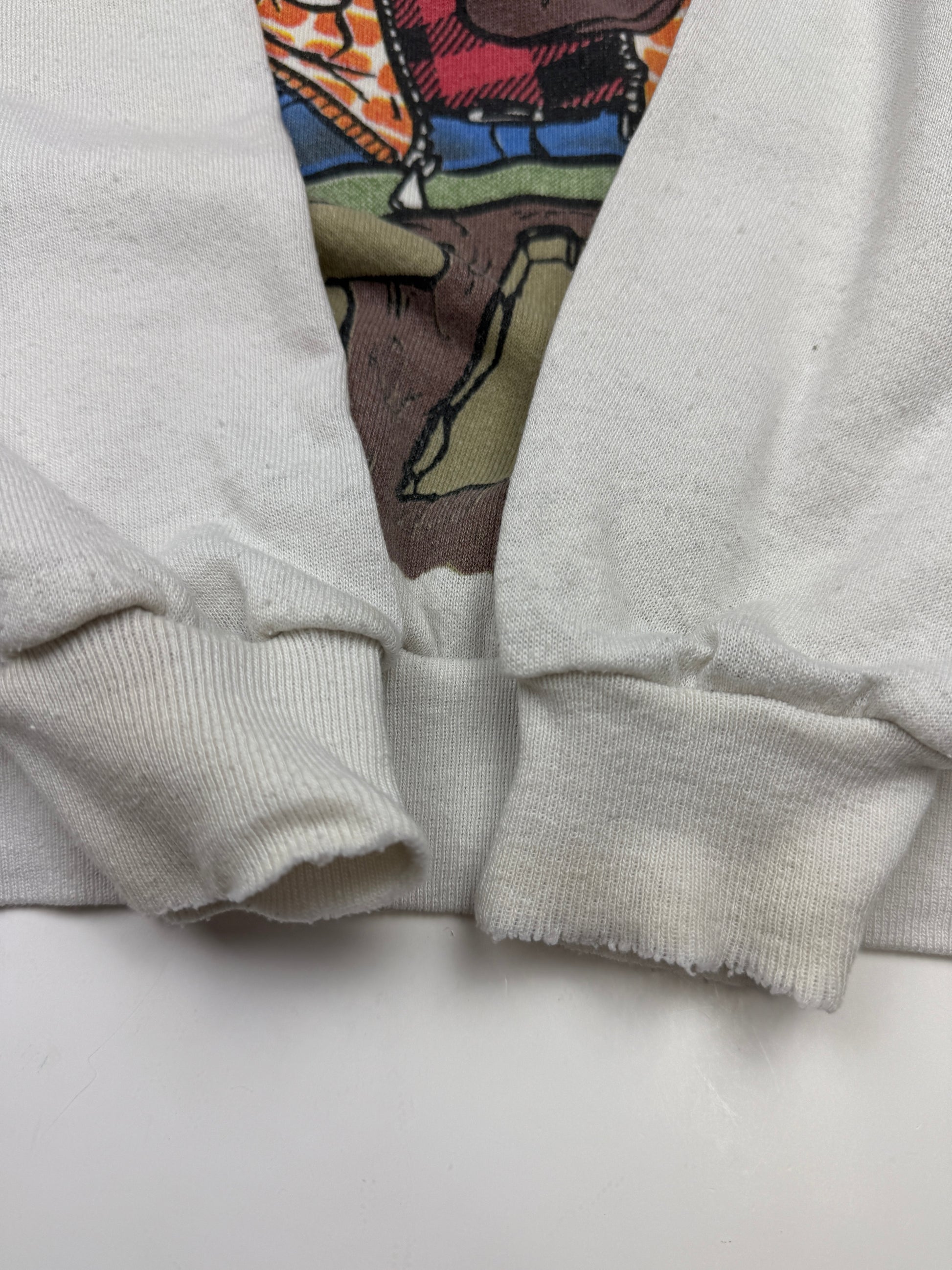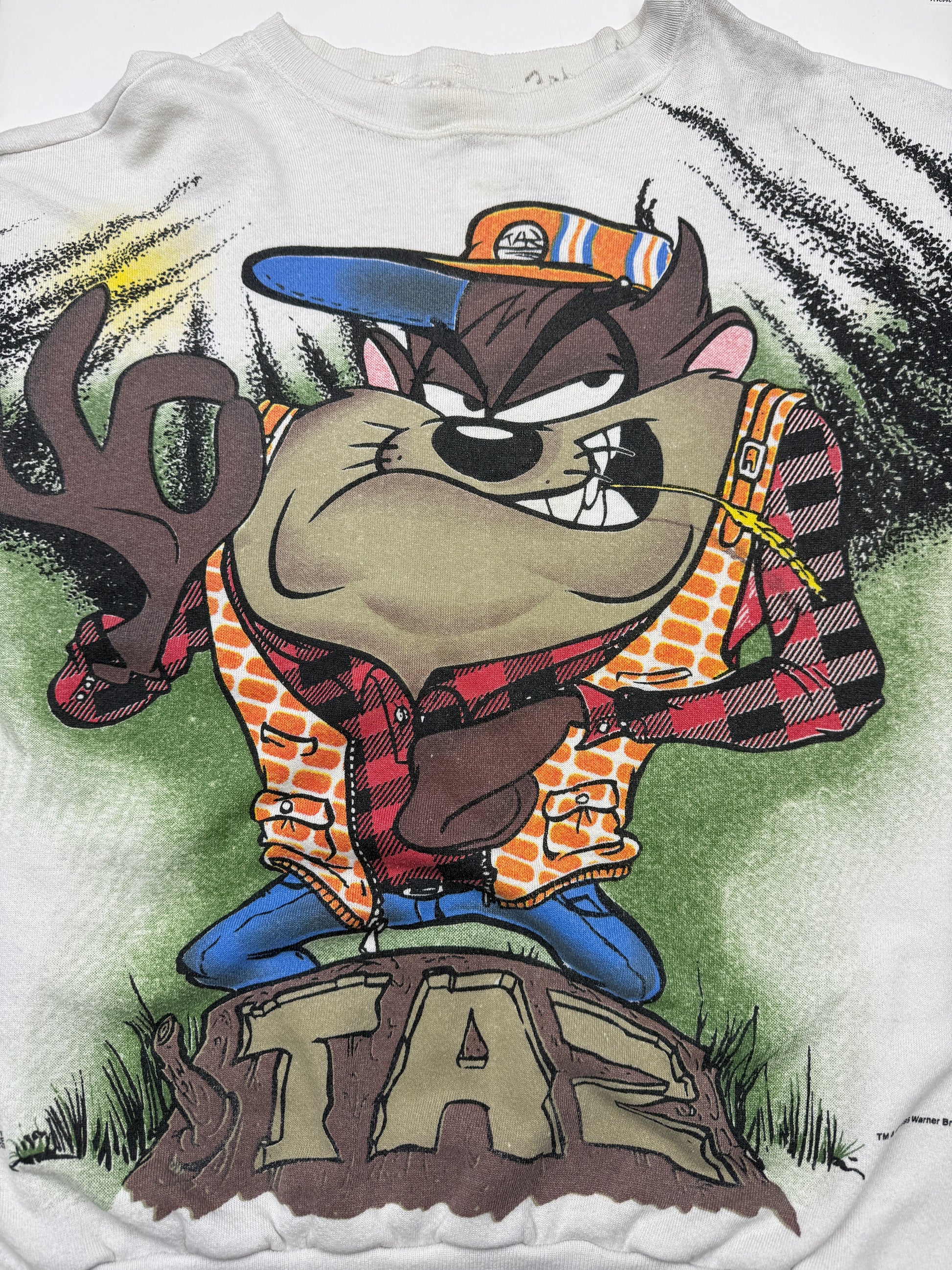 Vintage 1995 Looney Tunes Taz Farmer All Over Cartoon Print Crewneck Sweatshirt Size L 90s