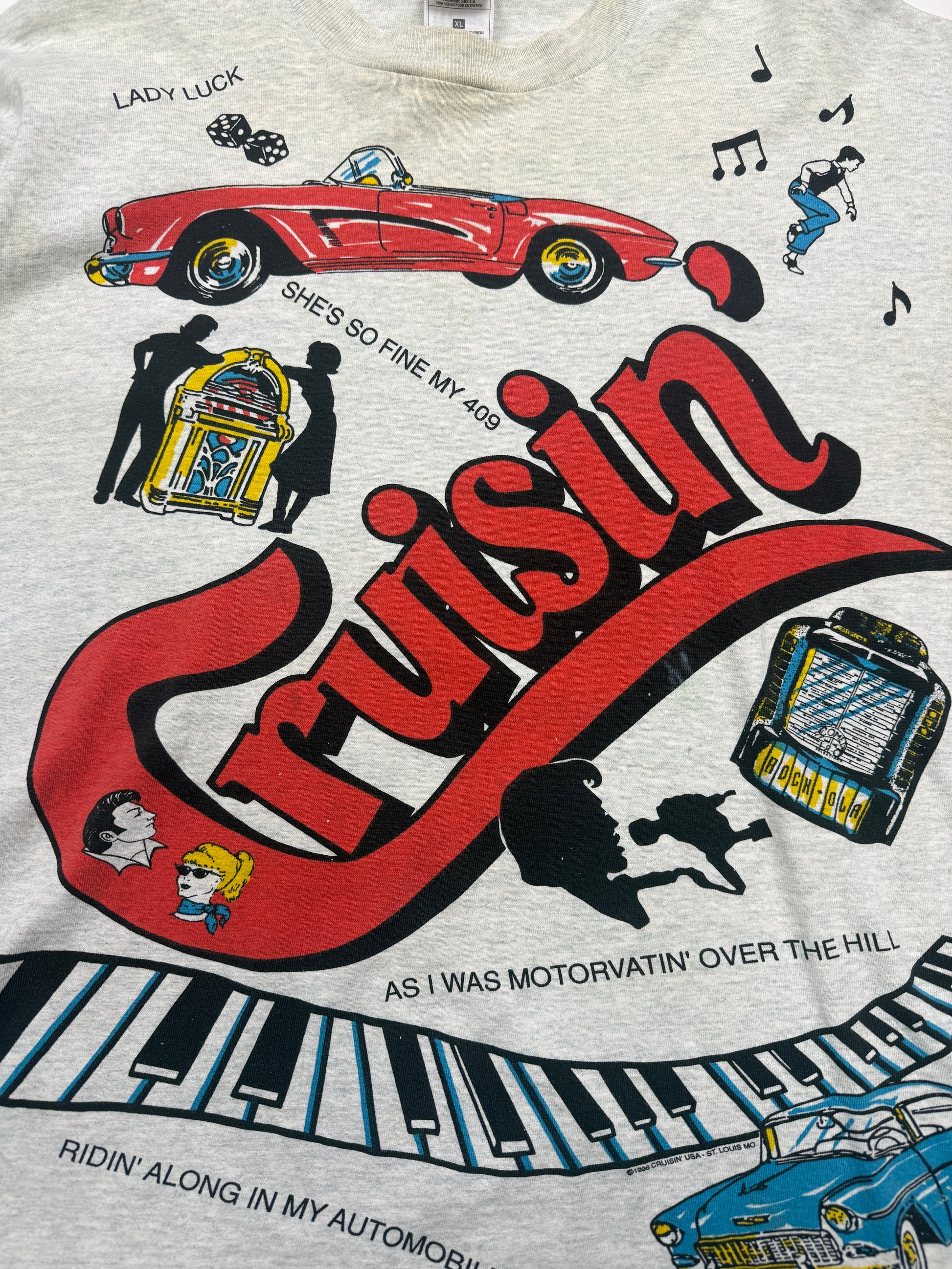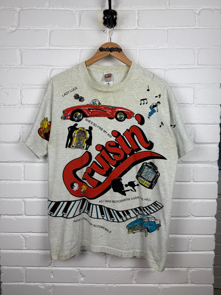 Vintage 1996 Cruisin Back To The 50s All Over Print Classic Cars Diner T Shirt Size XL