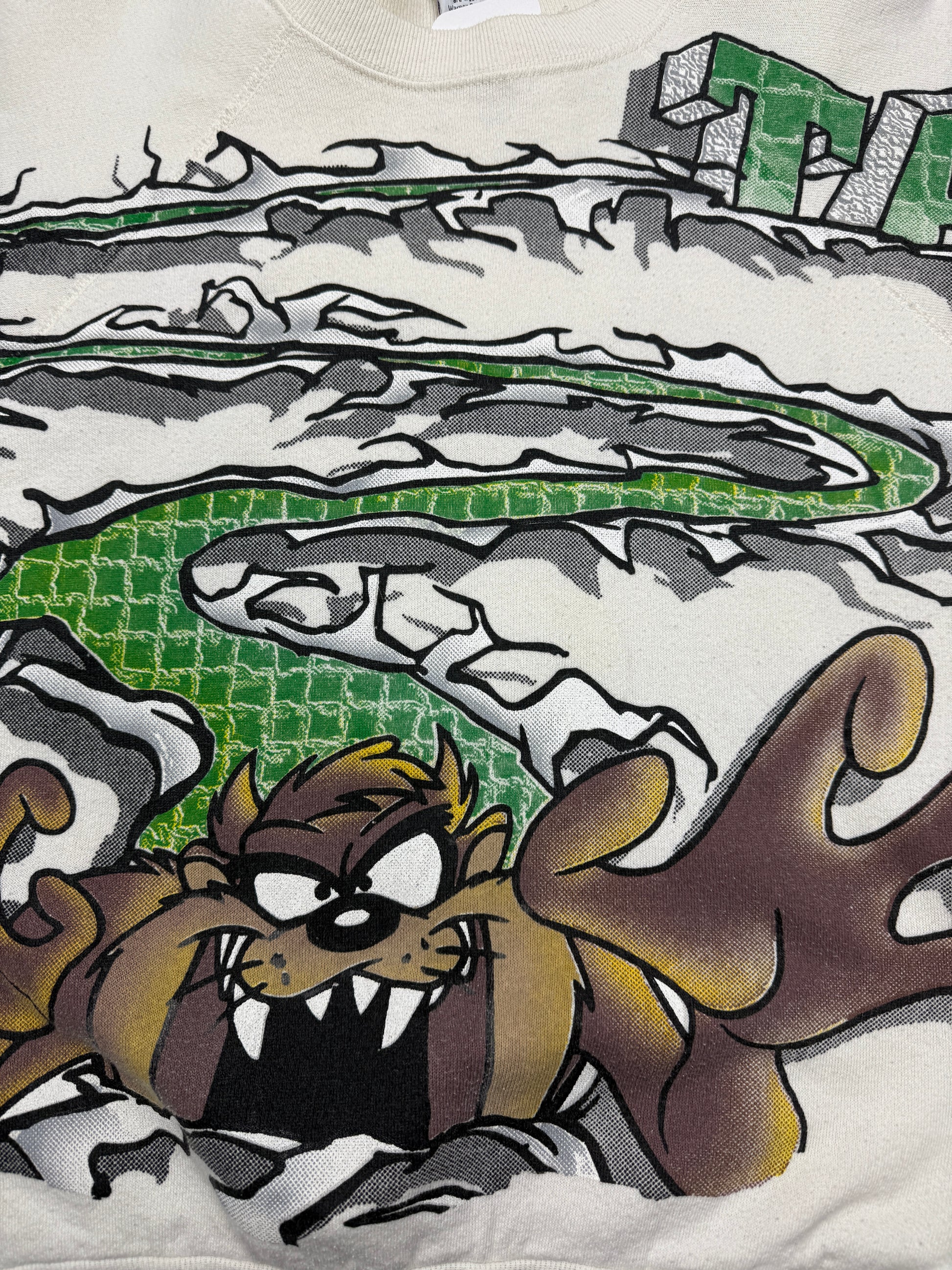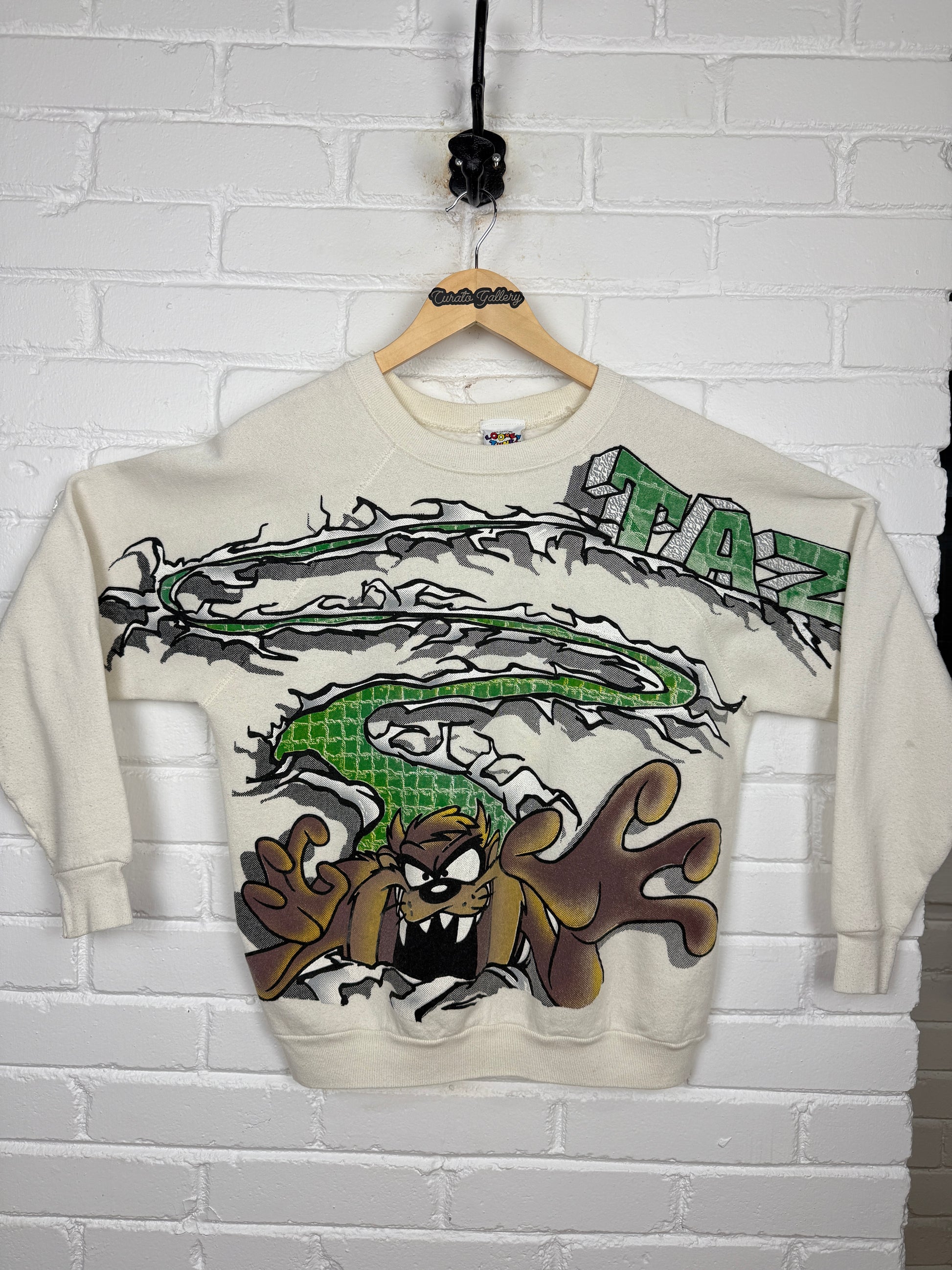 Vintage 1996 Looney Tunes Taz Grafiti Tear All Over Print Crewneck Sweatshirt Size M 90s