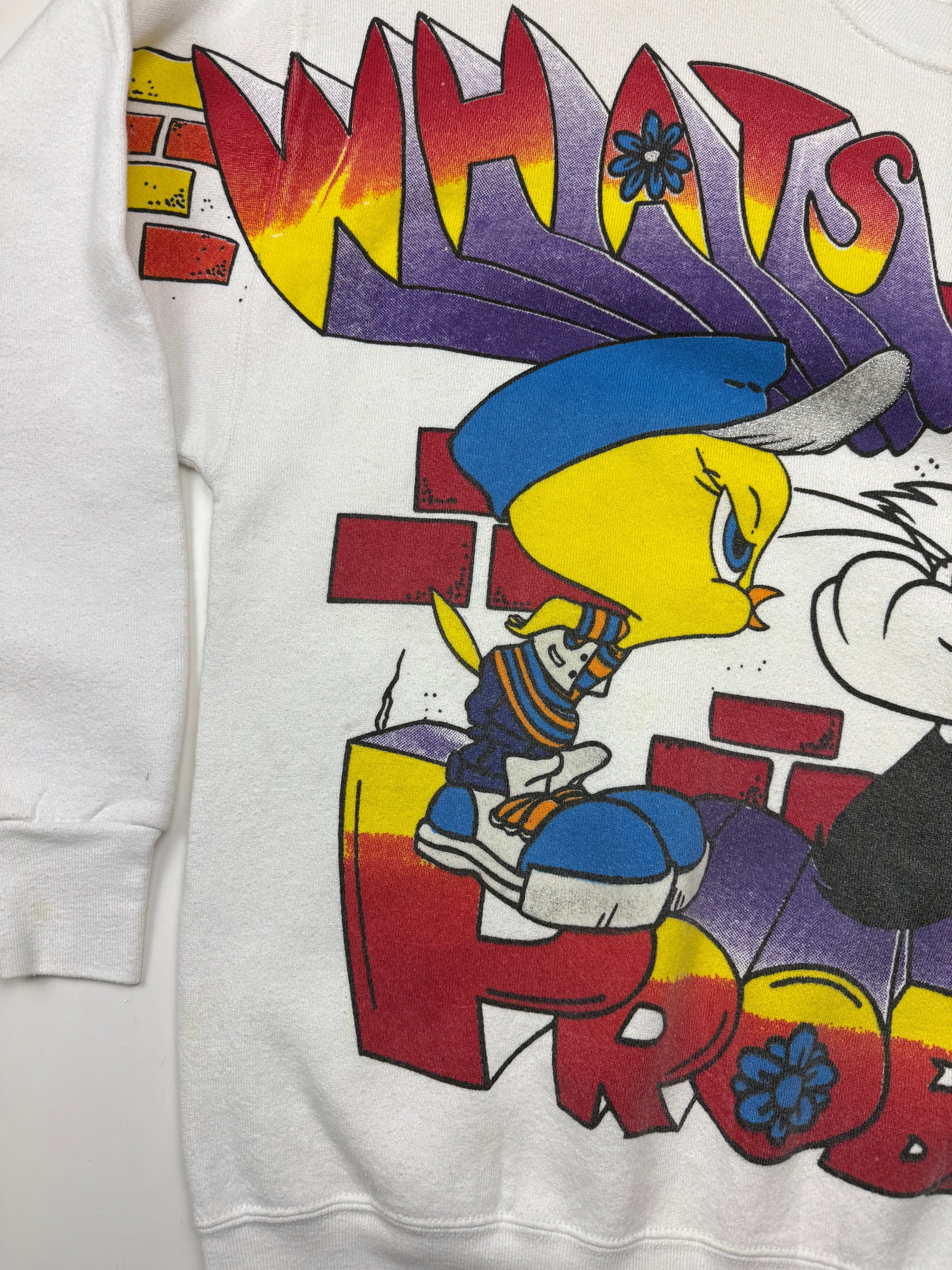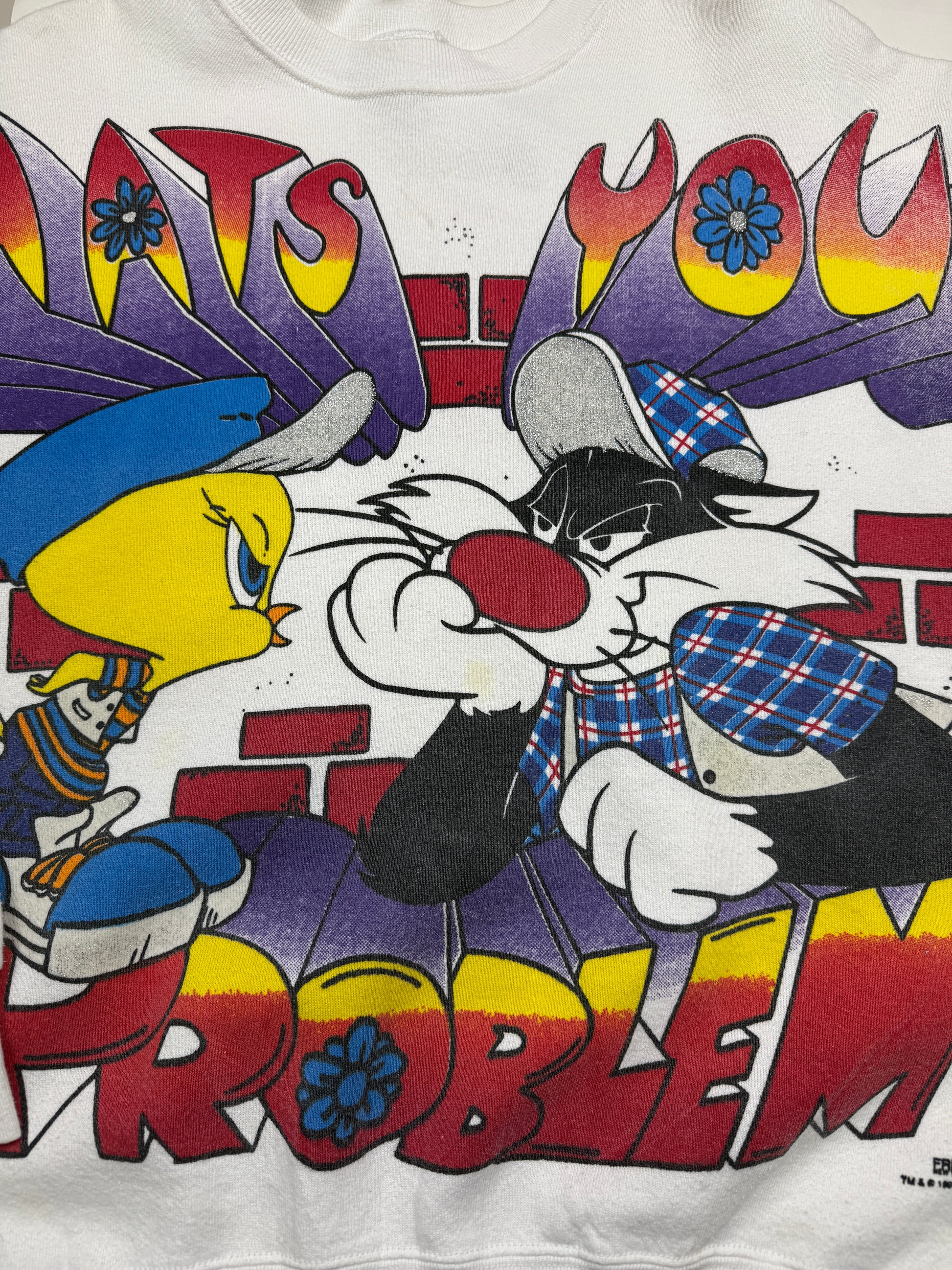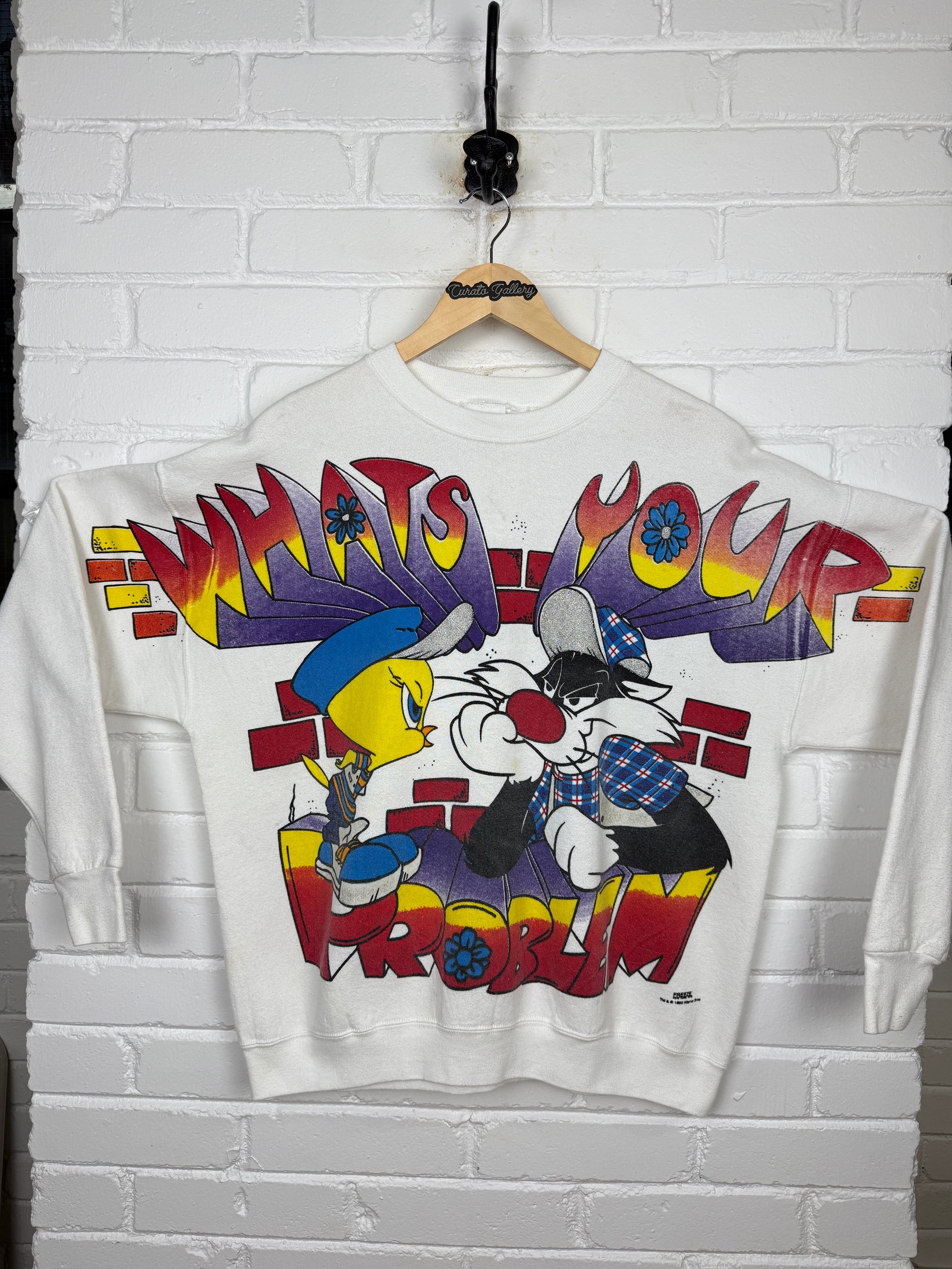 Vintage 1996 looney Tunes Tweety Bird Sylvestre Whats Your Problem? Sweatshirt Size L 90s