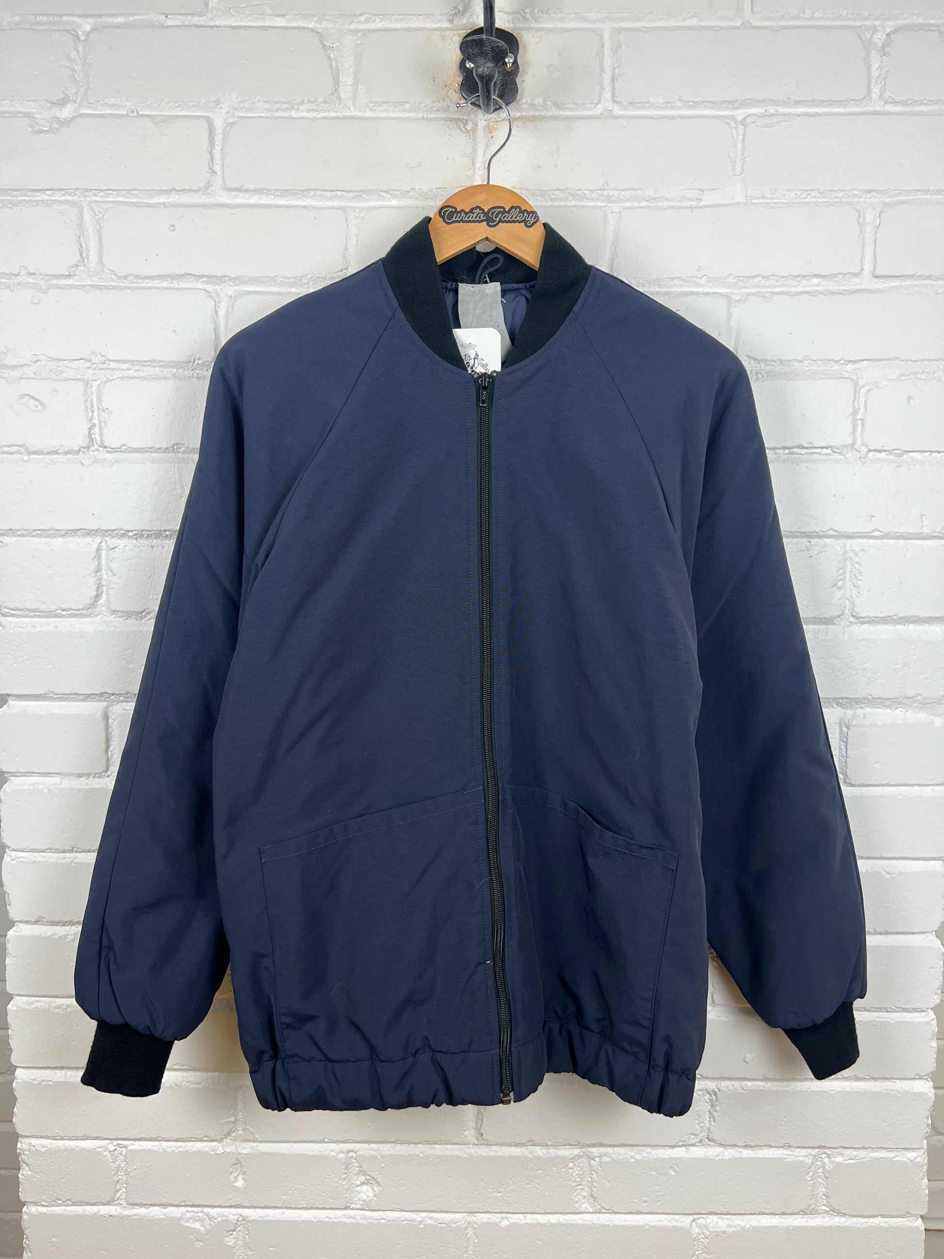 Vintage 80s/90s Blank Quilted Lined Insulated Bomber Jacket Size M Navy Blue