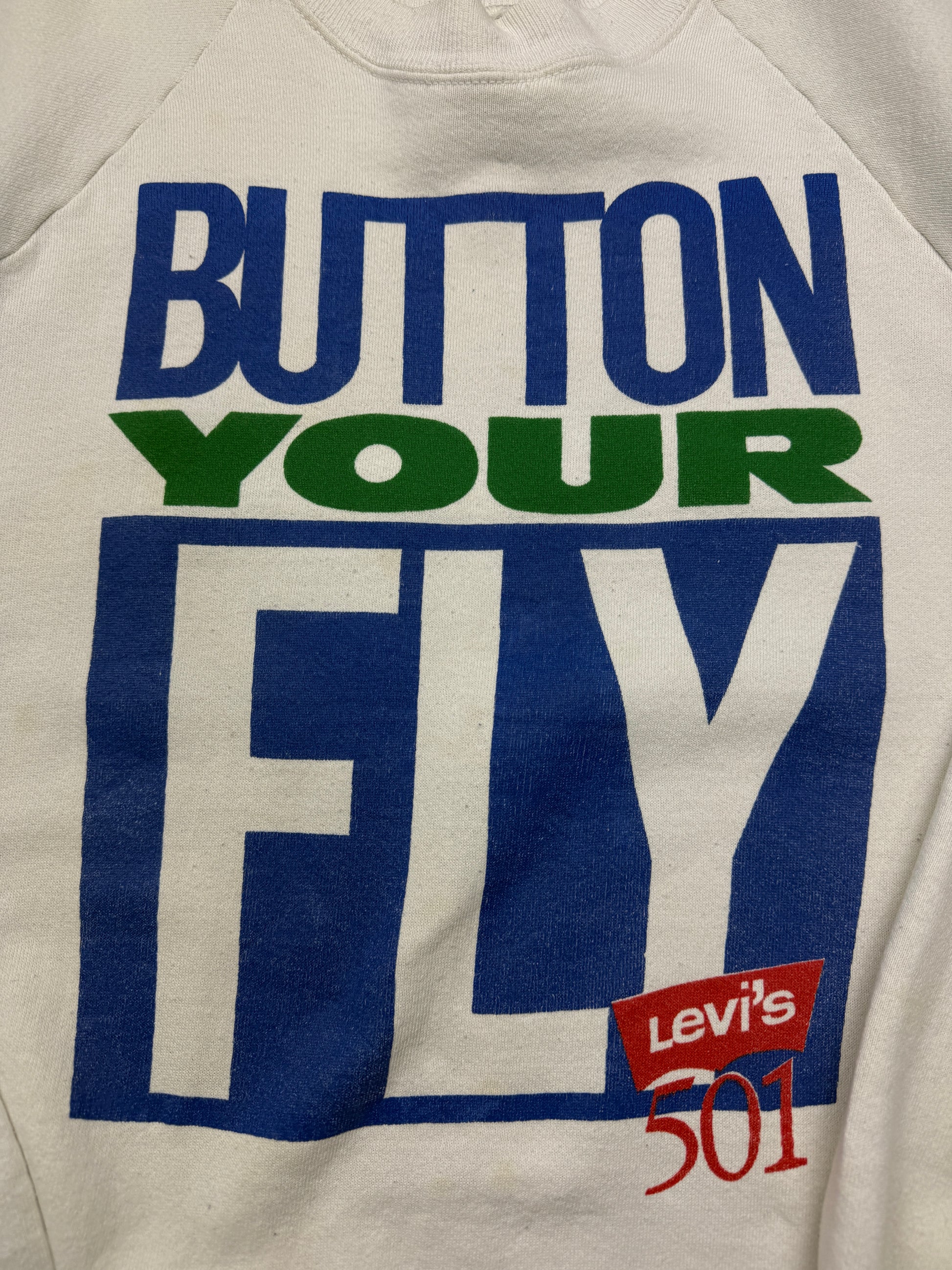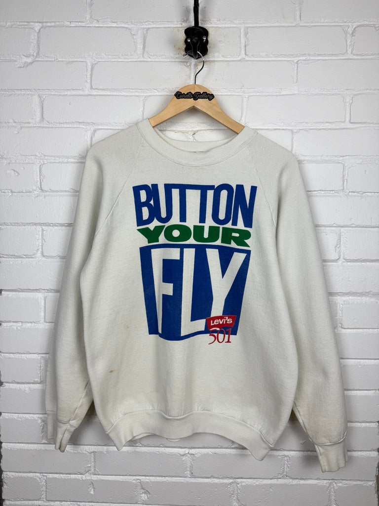 Vintage 80s/90s Levis 501 Button Your Fly Big Graphic Crewneck Size L