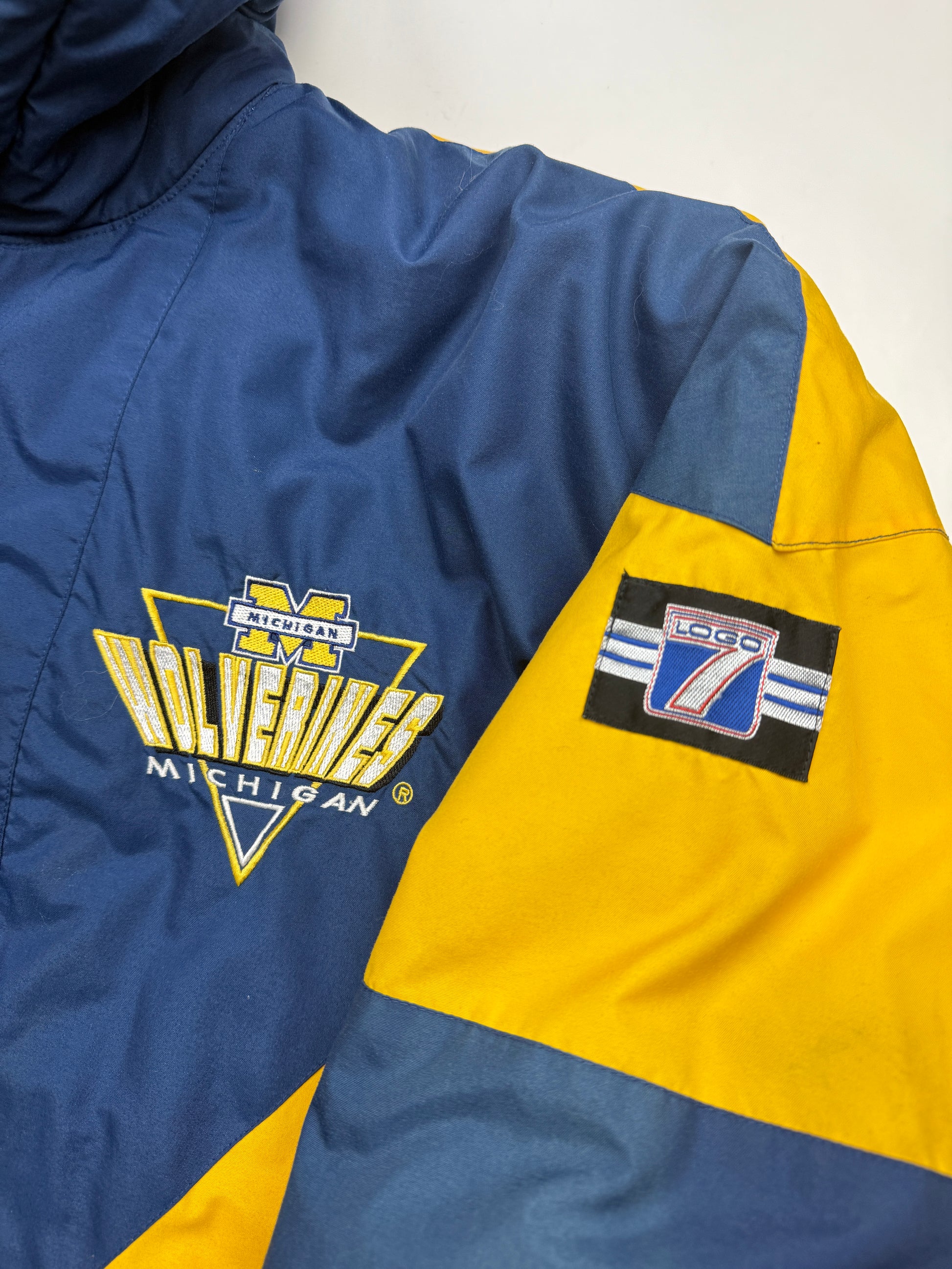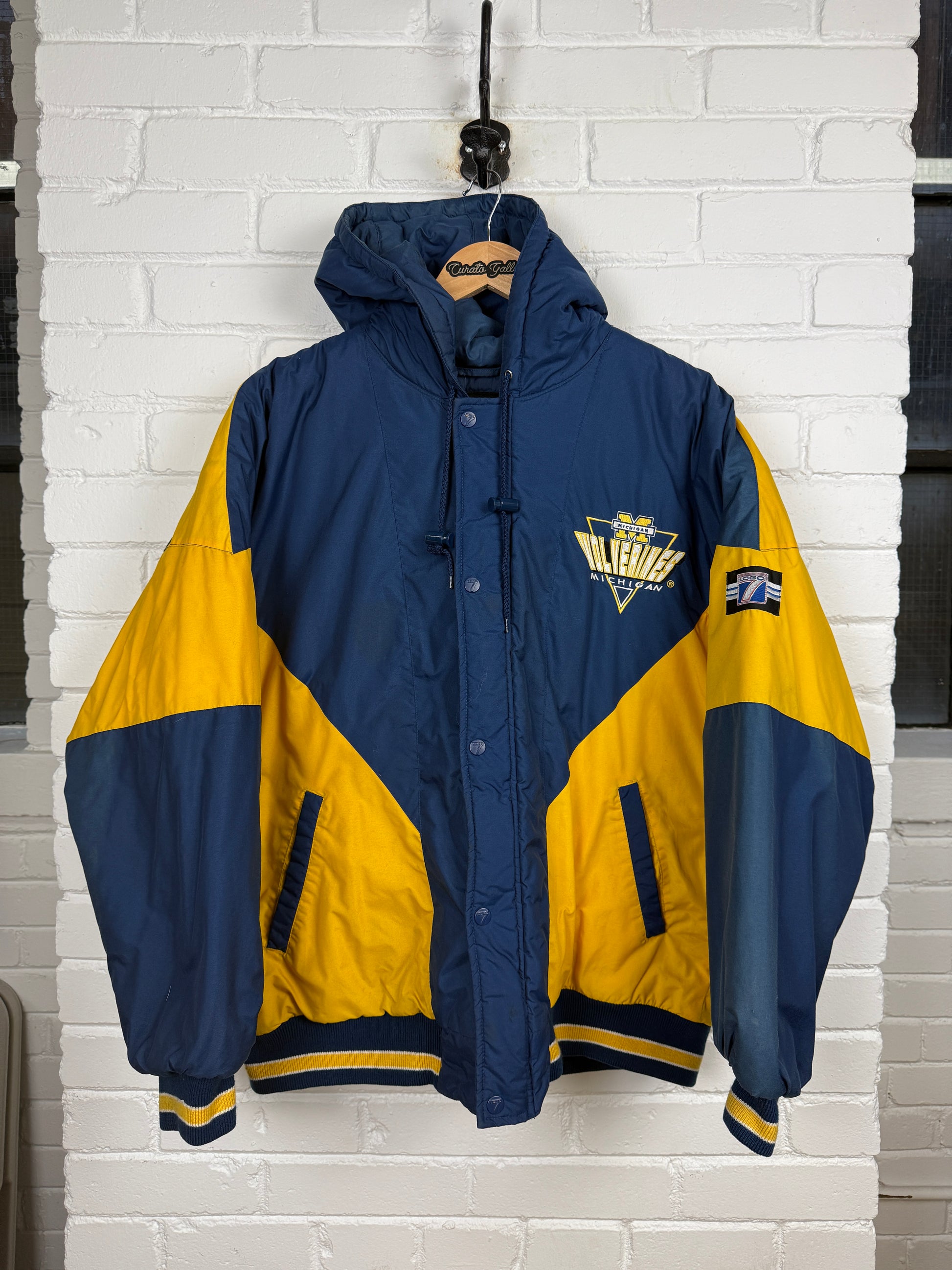 Vintage 80s/90s Michigan Wolverines Embroidered Logo NCAA Logo 7 Insulated Bomber Jacket Size XL