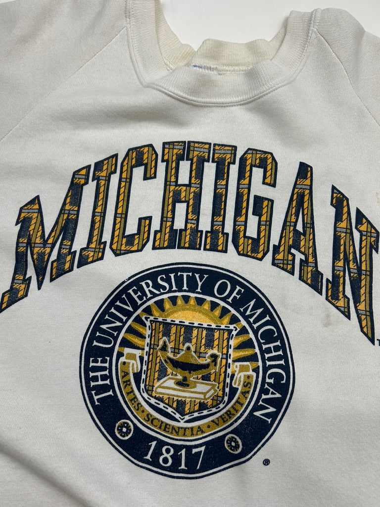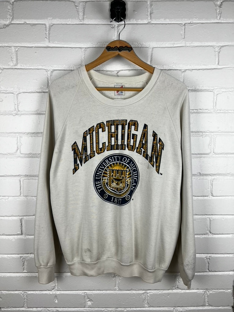 Vintage 80s/90s Michigan Wolverines Iniversity Crest Arc Spell Out Sweatshirt Size XL
