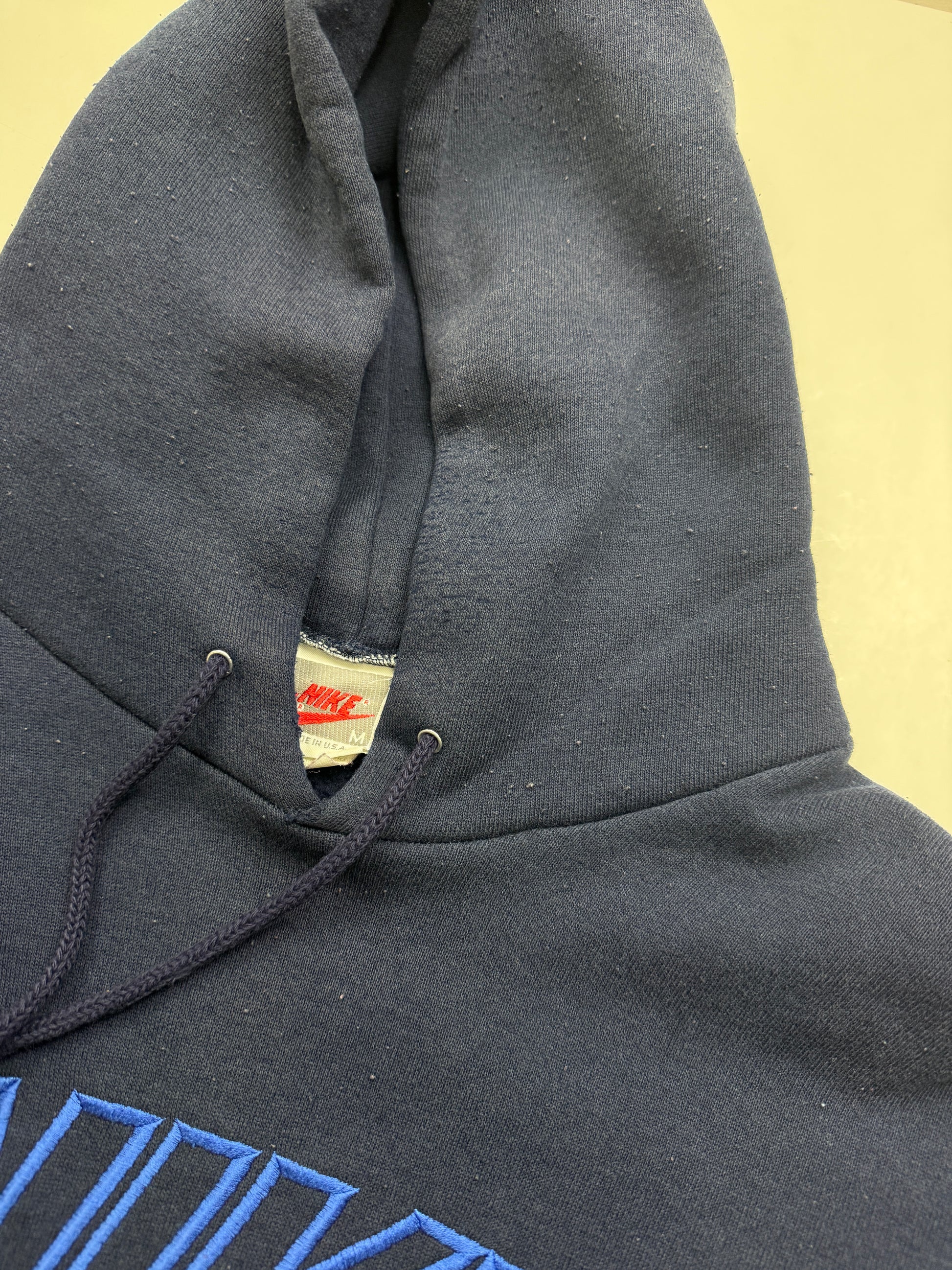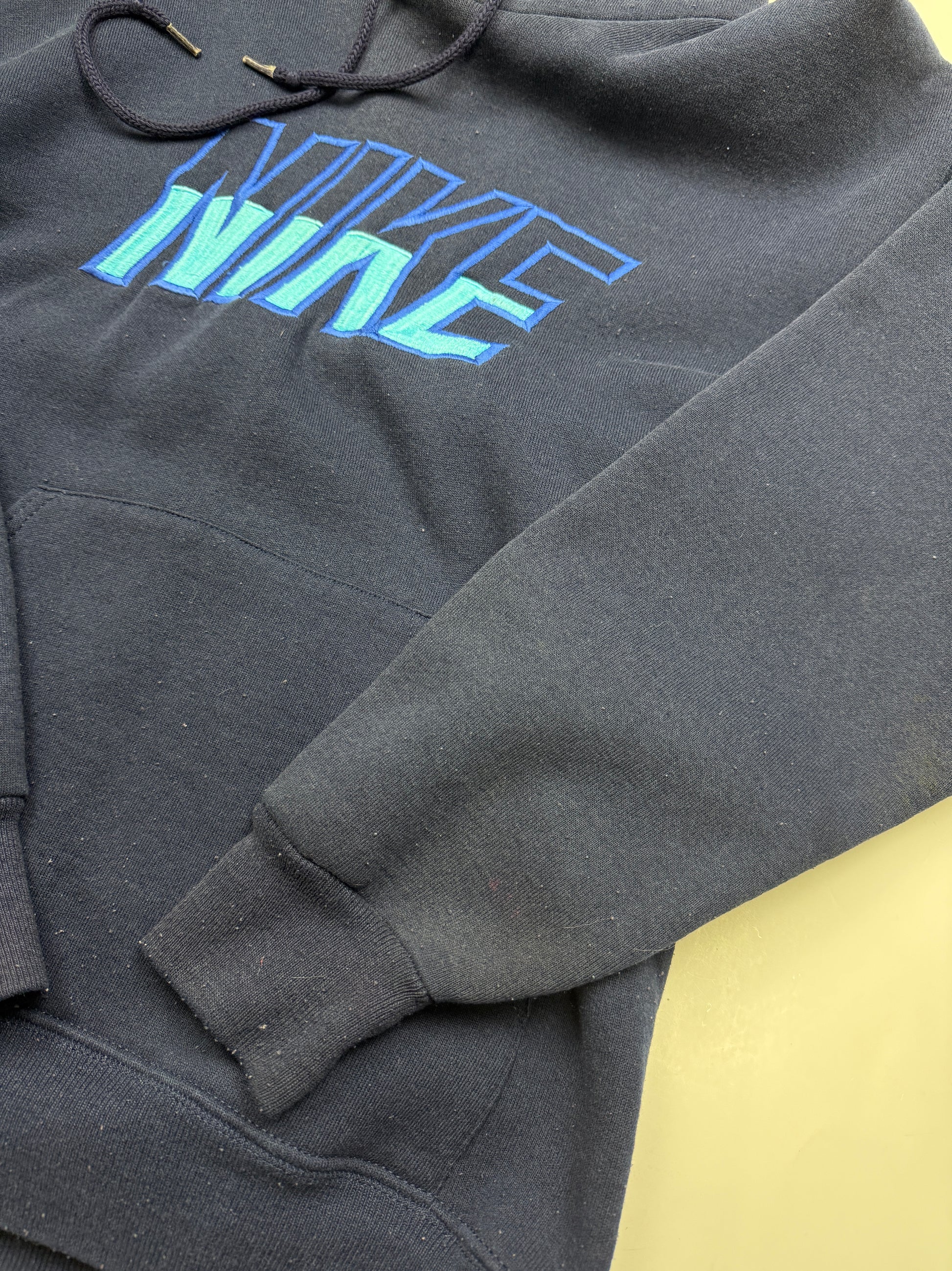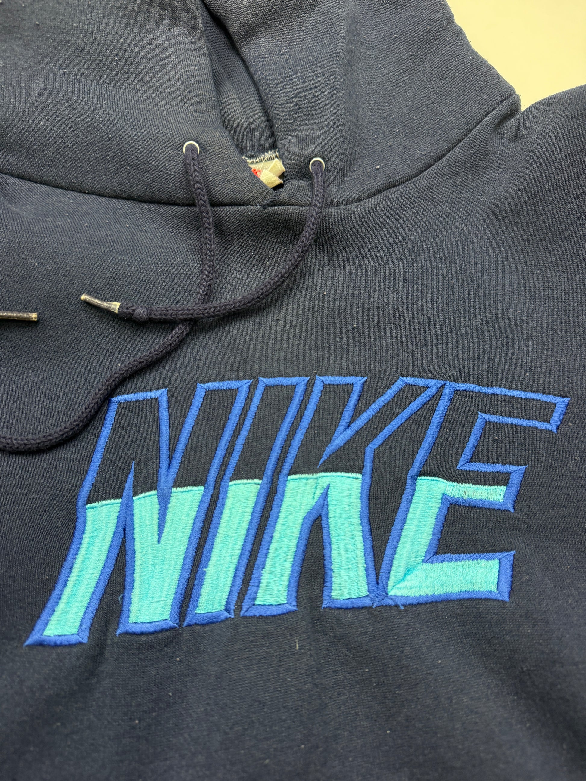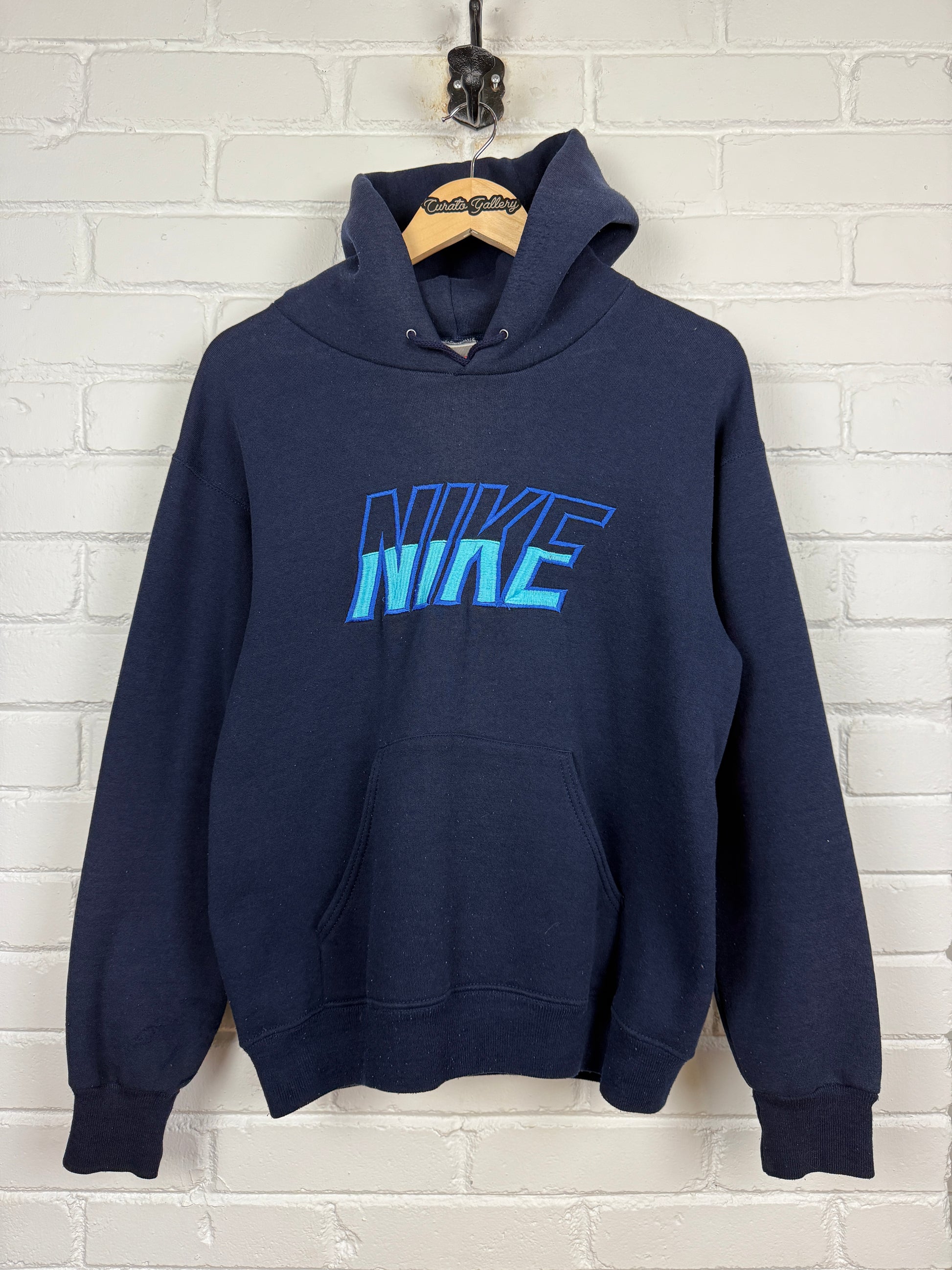 Vintage 80s/90s Nike Embroidered Spell Out Blue Ombre Hooded Sweatshirt Size M