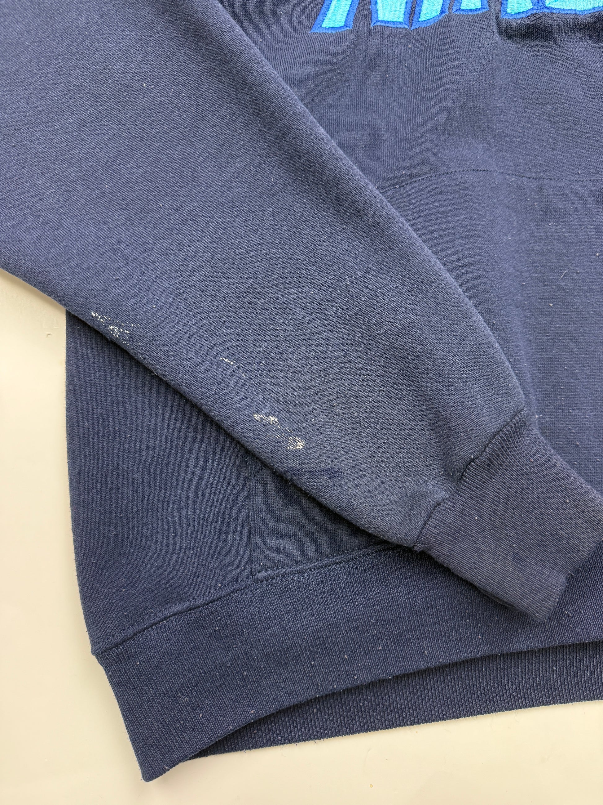 General wear found around due to age. Pilling found around due to age. Marks on right sleeve.