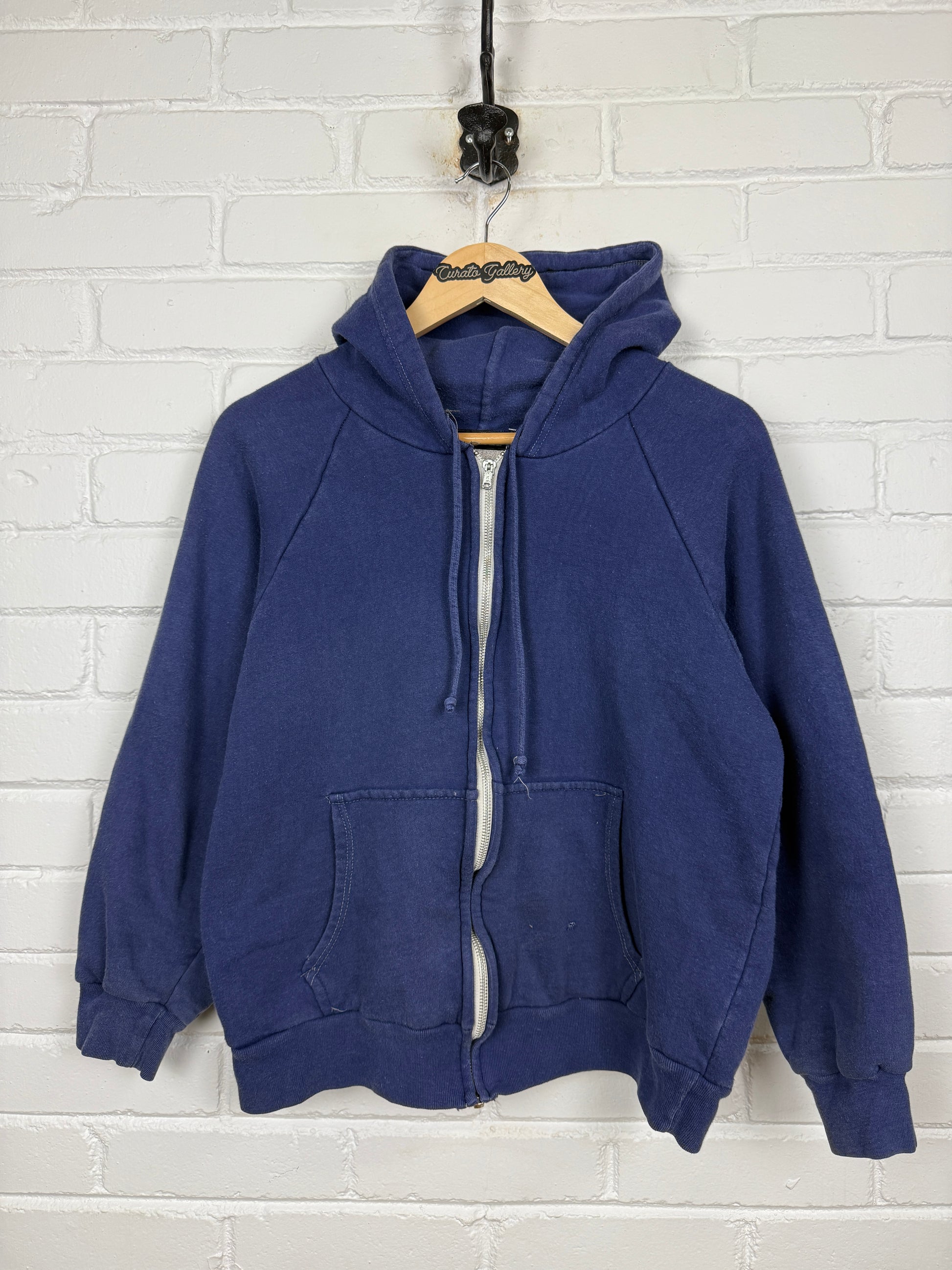 Vintage 80s Poplar Thermal Lined Blank Full Zip Hooded Sweatshirt Size XS