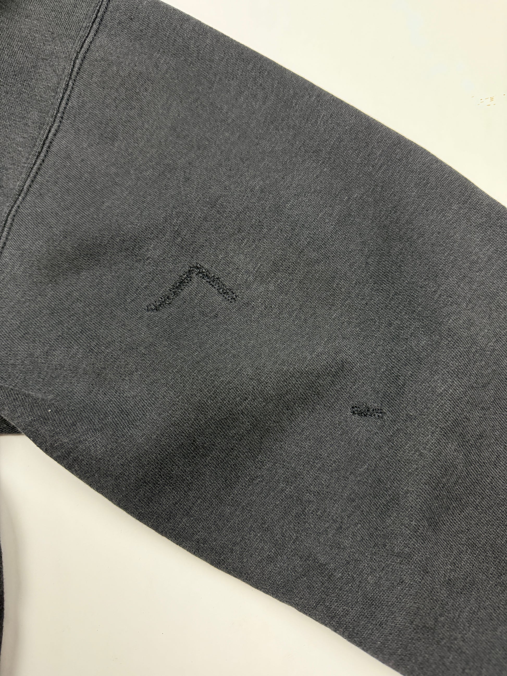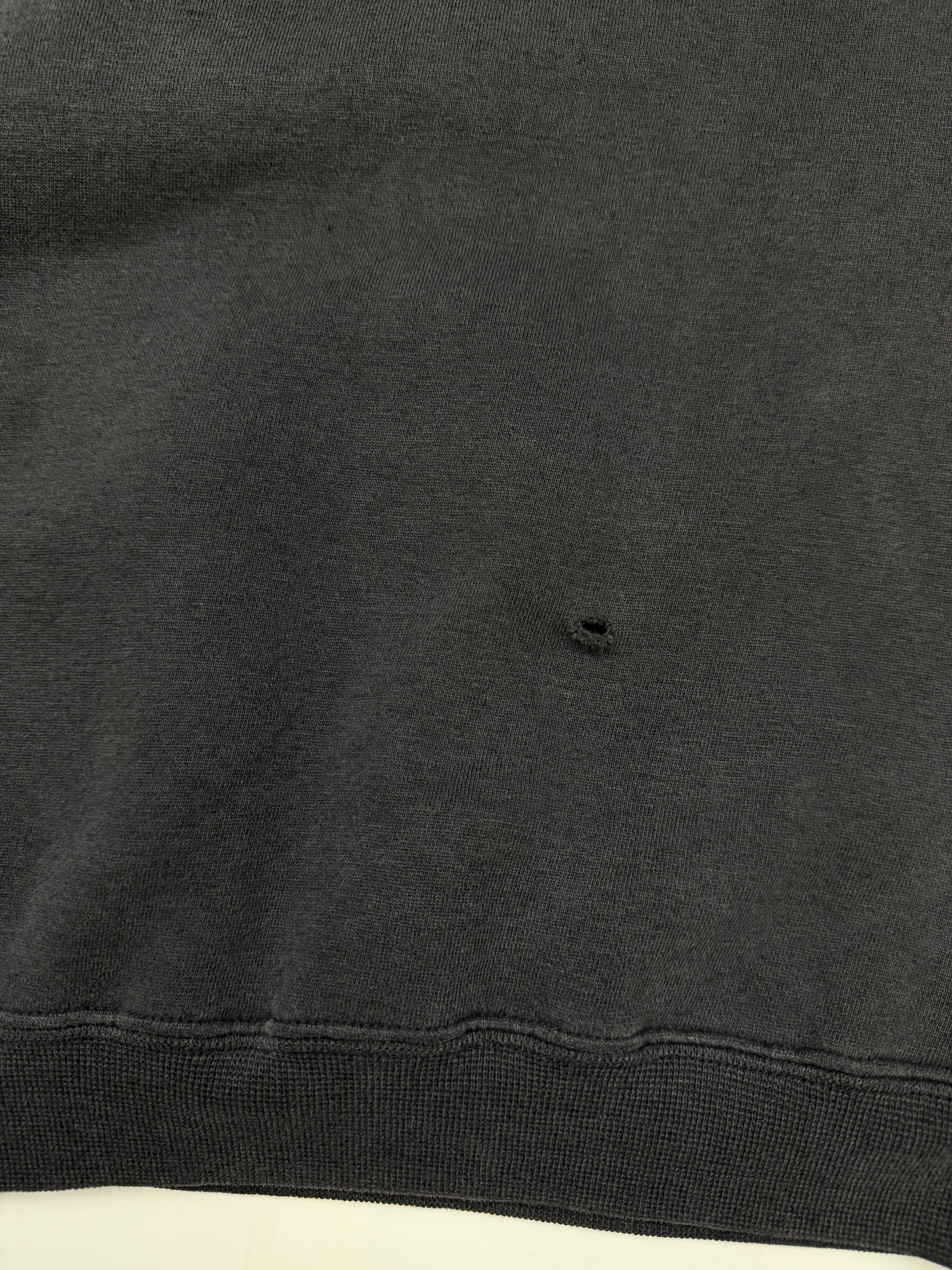 General wear found around due to age. Repairs on left arm. Pinhole on back by bottom.