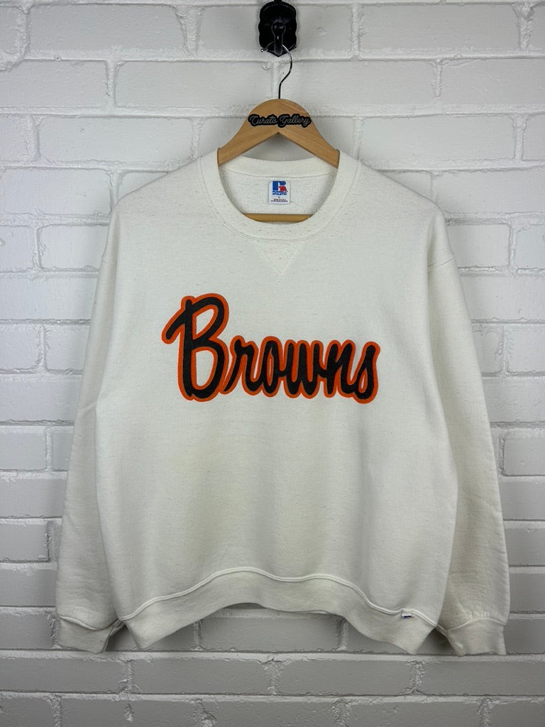 Vintage 90s Cleveland Browns Spell Out Russell Athletic NFL Sweatshirt Size L