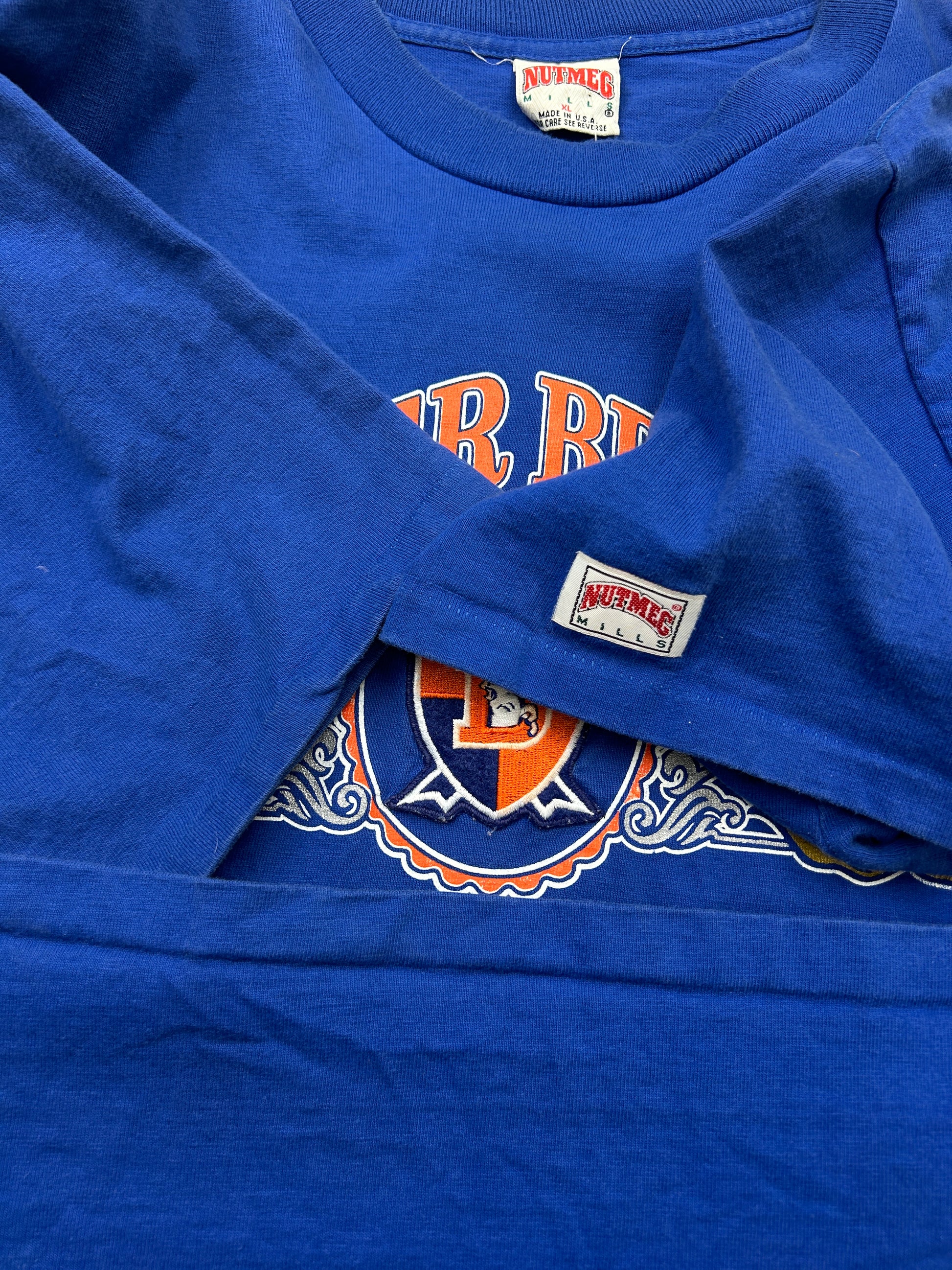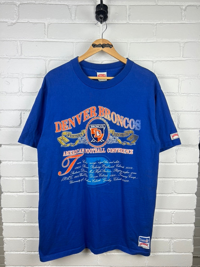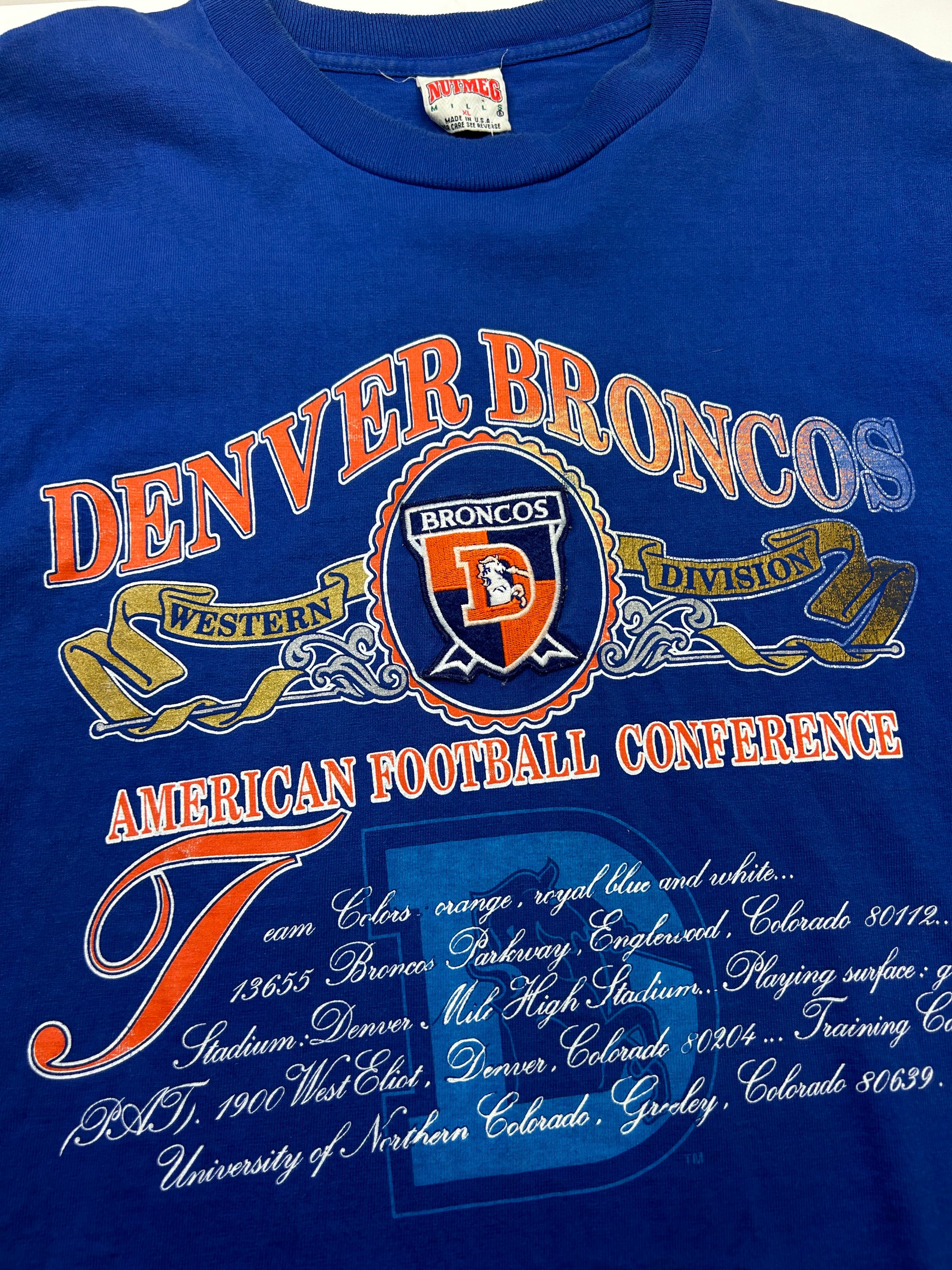 Vintage 90s Denver Broncos NFL Football Crest Graphic Nutmeg T Shirt Size XL