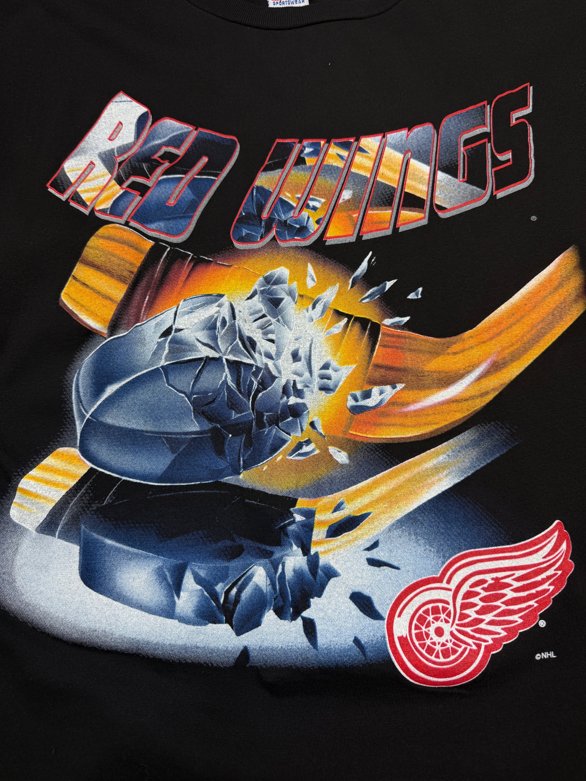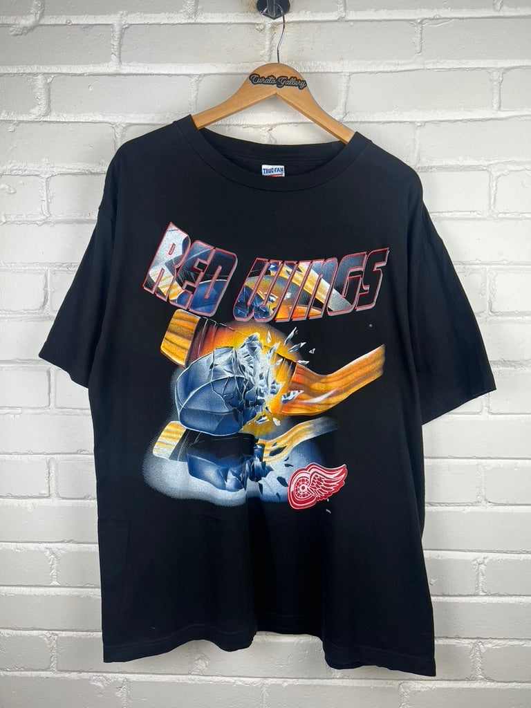 Vintage 90s Detroit Red Wings NHL Hockey Big Graphic Hockey Puck T Shirt Size XL