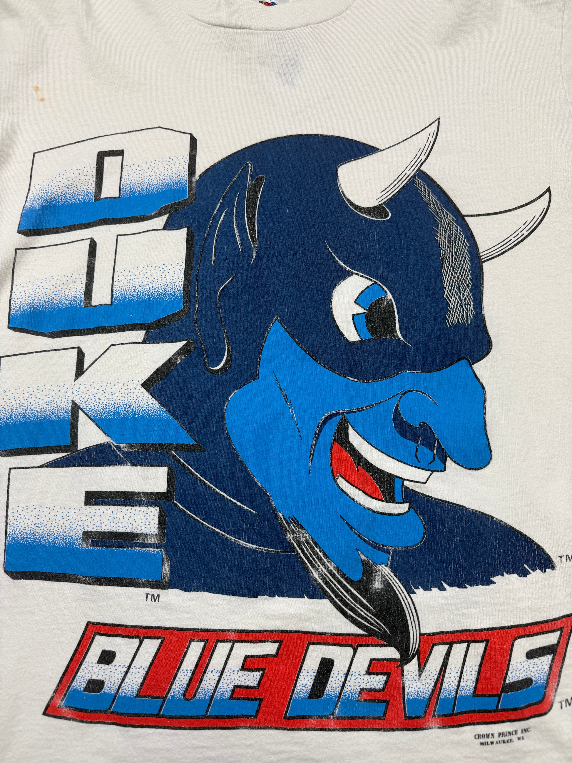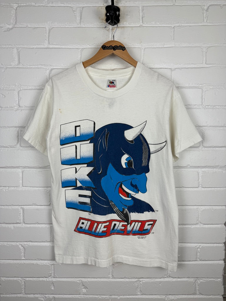 Vintage 90s Duke Blue Devils University NCAA Basketball Big Graphic T Shirt Size L March Madness